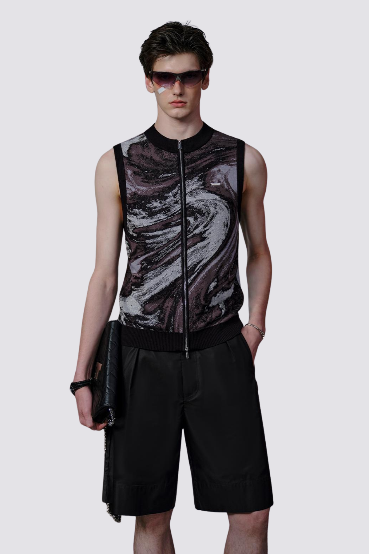 Bleak Pattern Jacquard Zipper Sleeveless Top