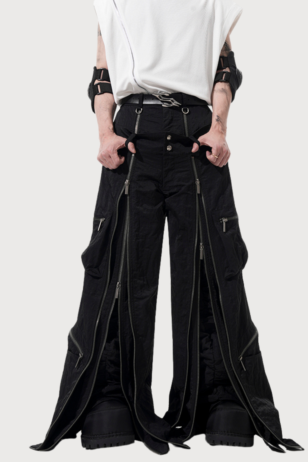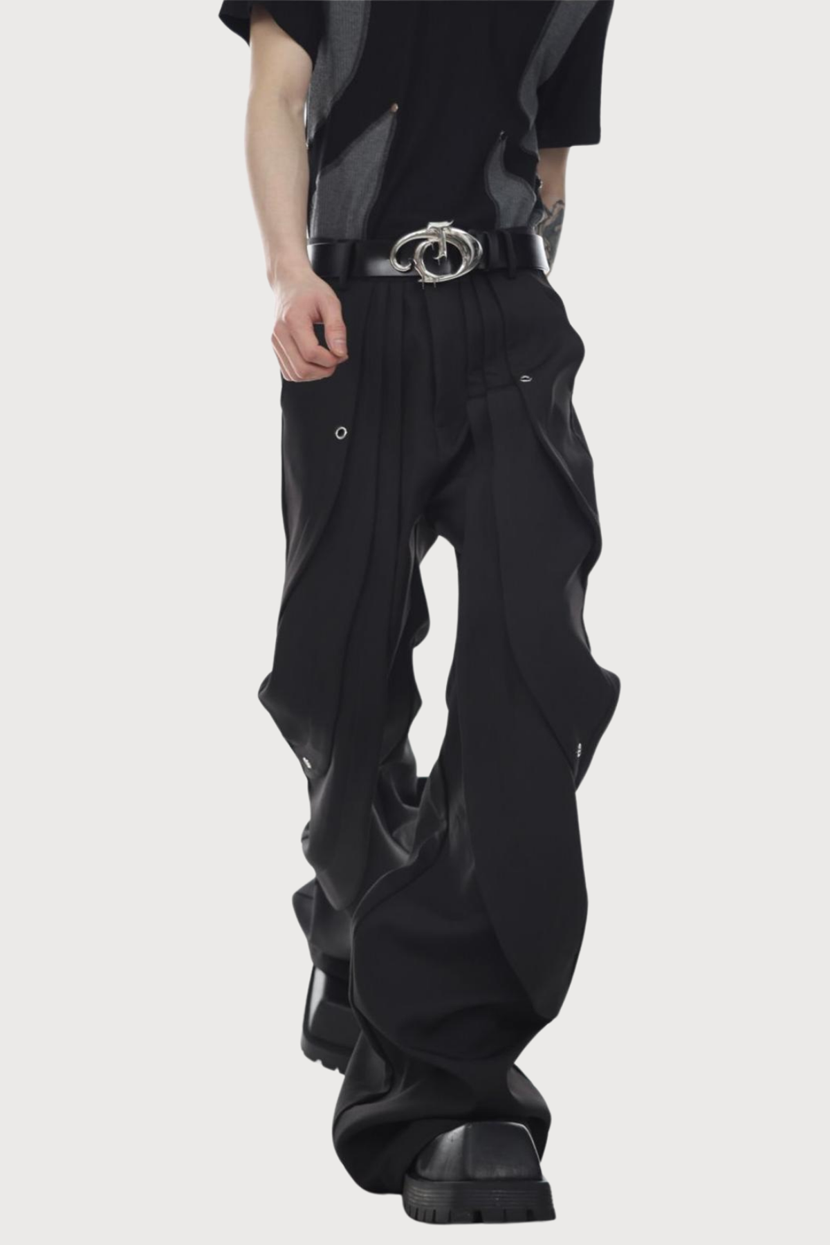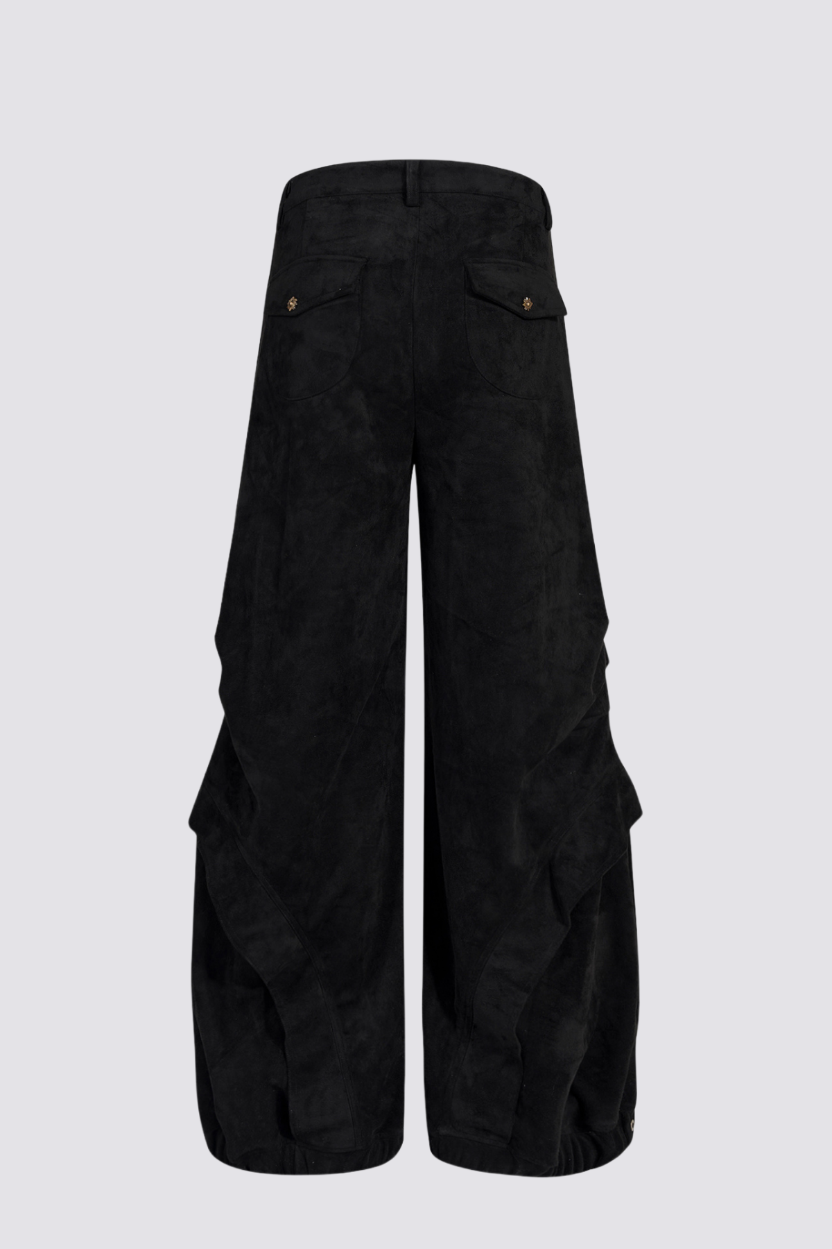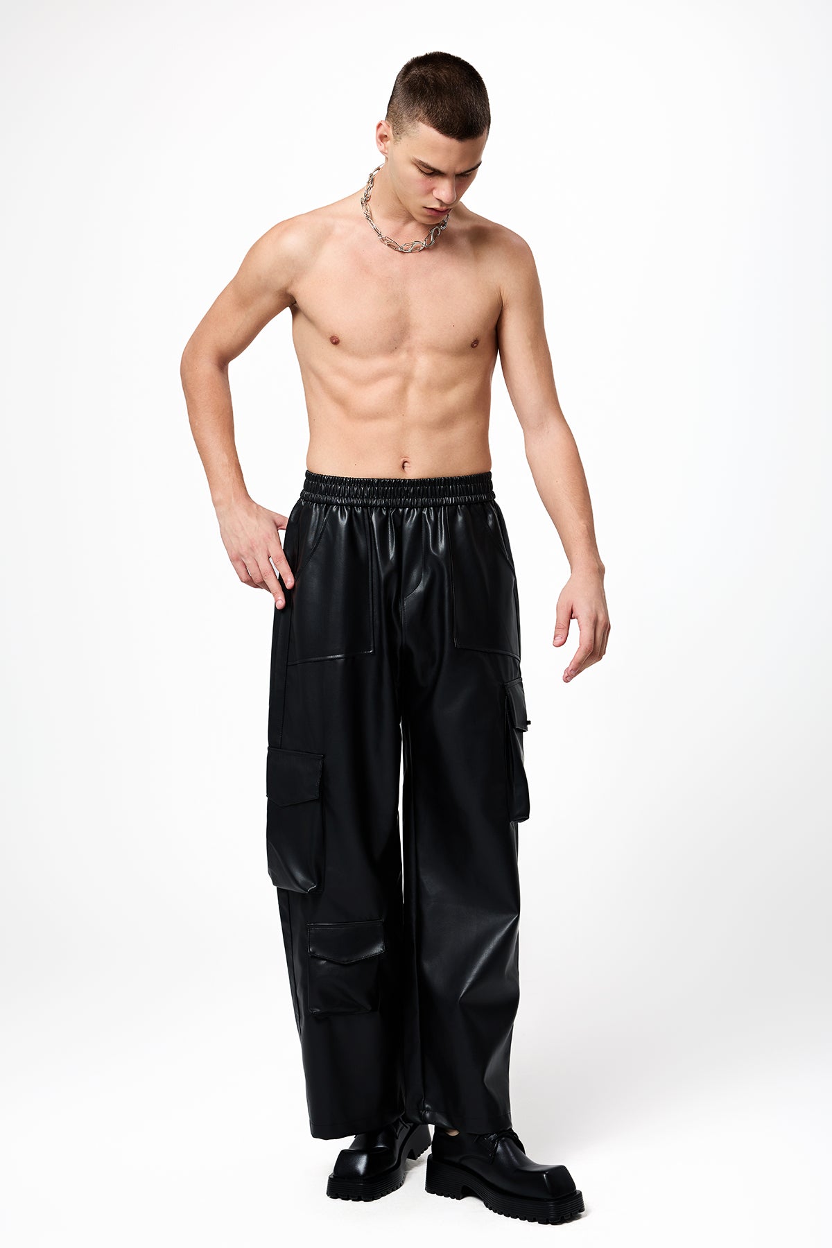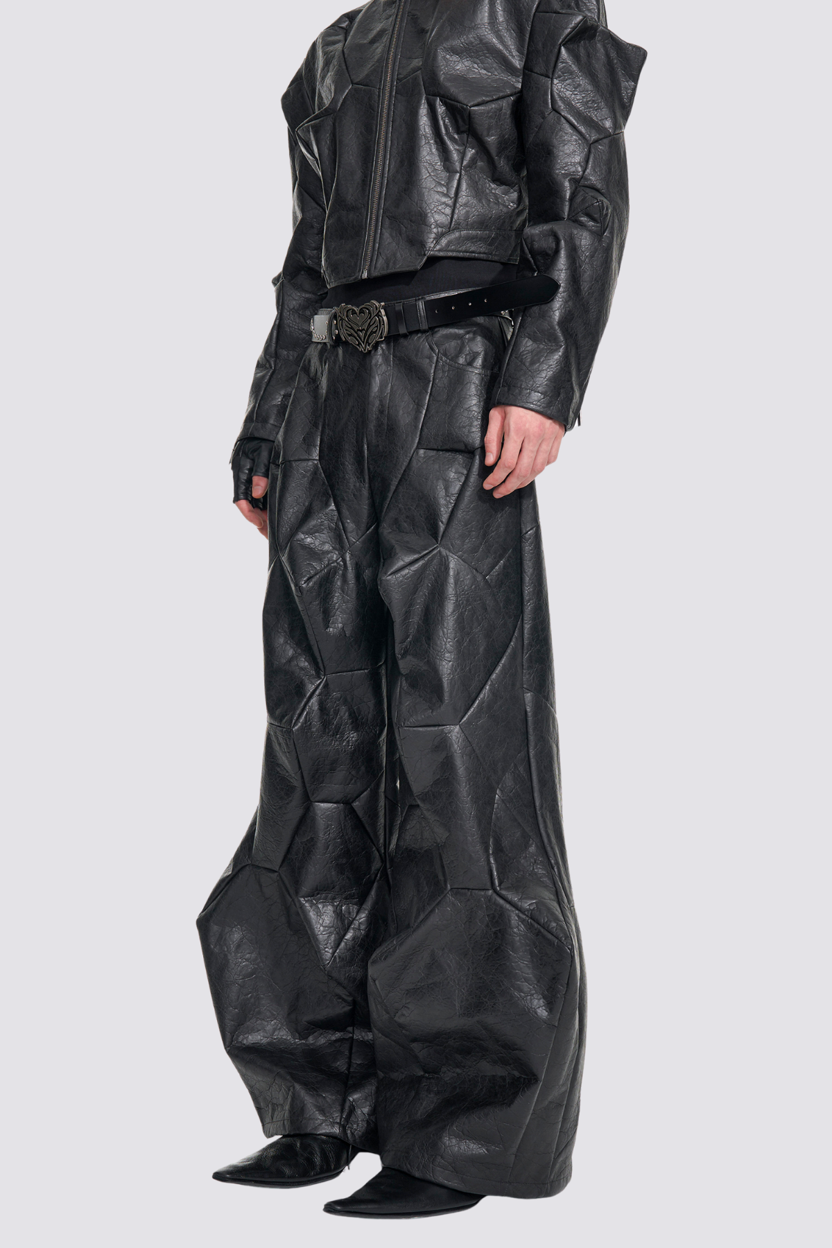 Noir Plate Leather Deconstructed Wide Leg Pants