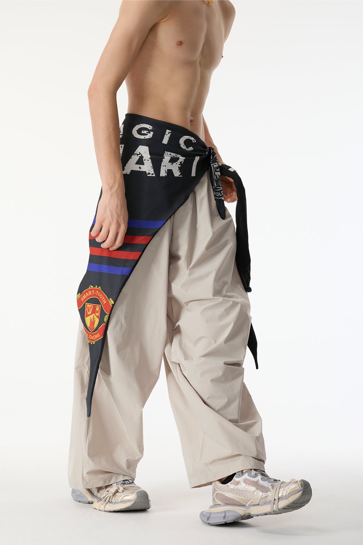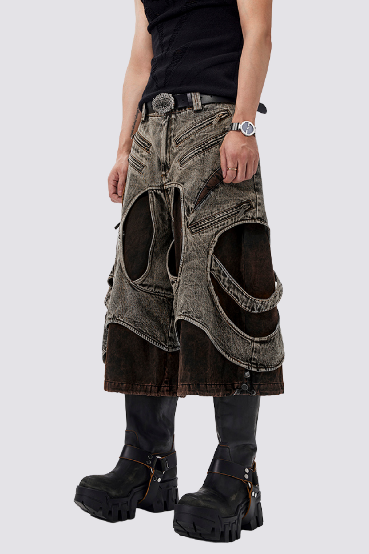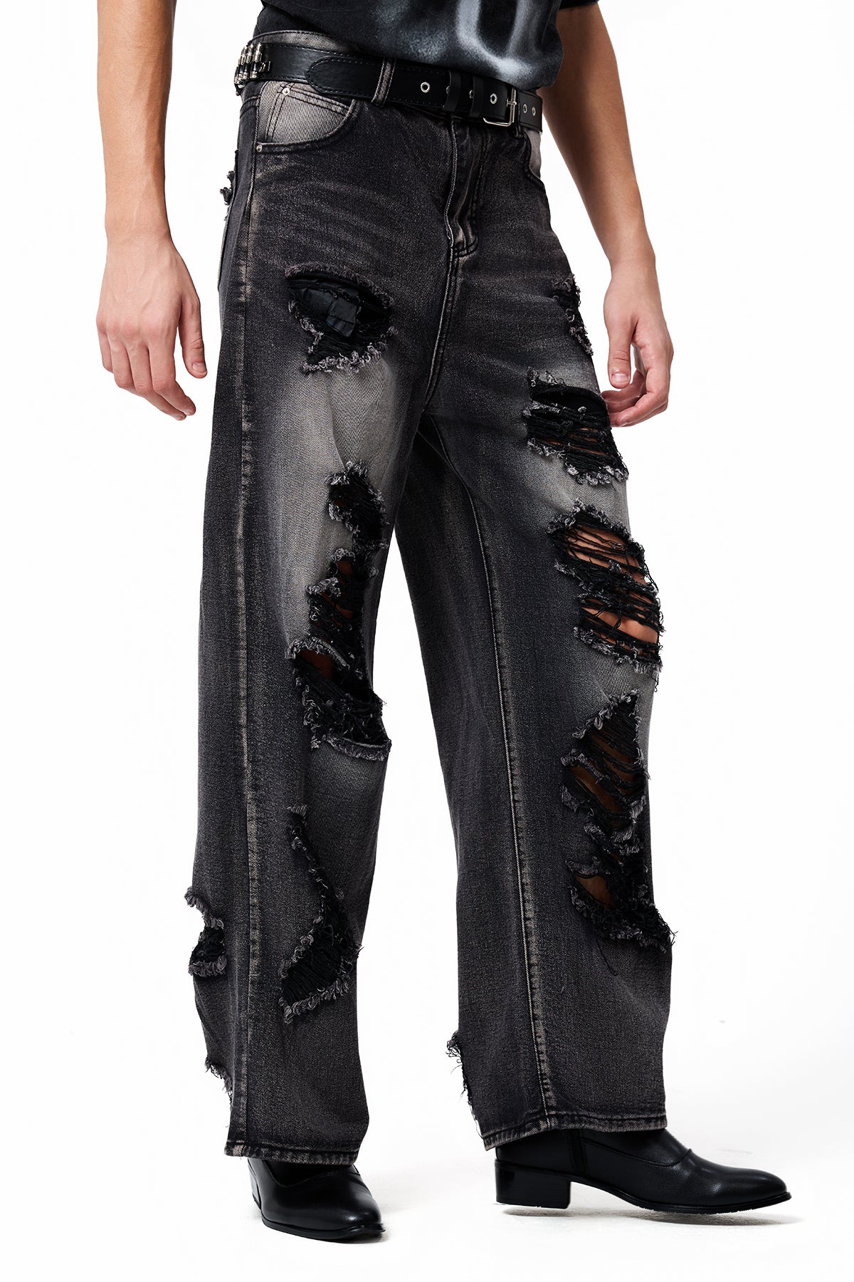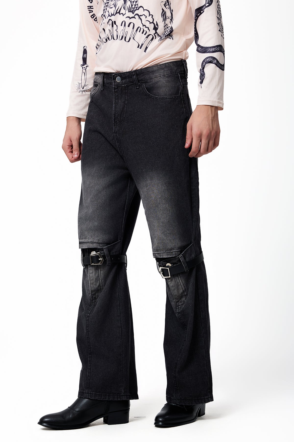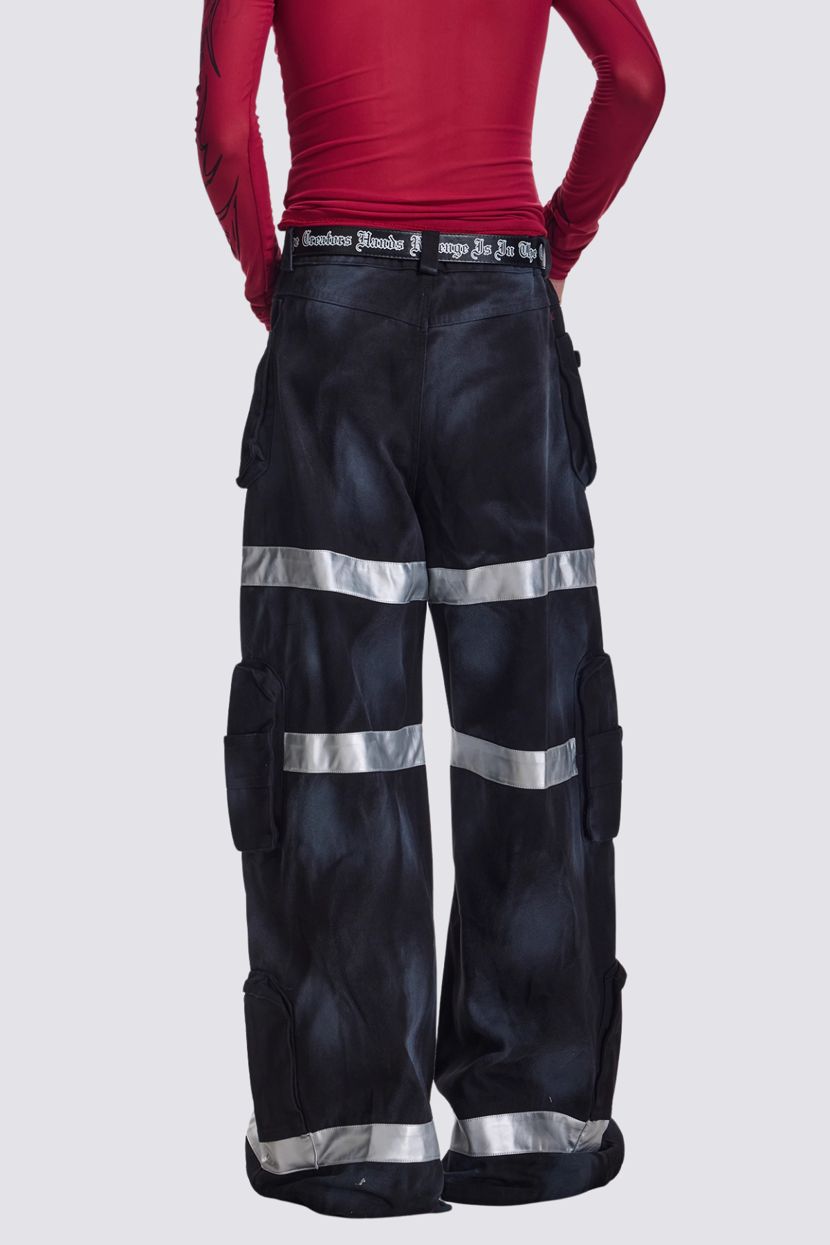 Noir Plate Leather Deconstructed Wide Leg Pants