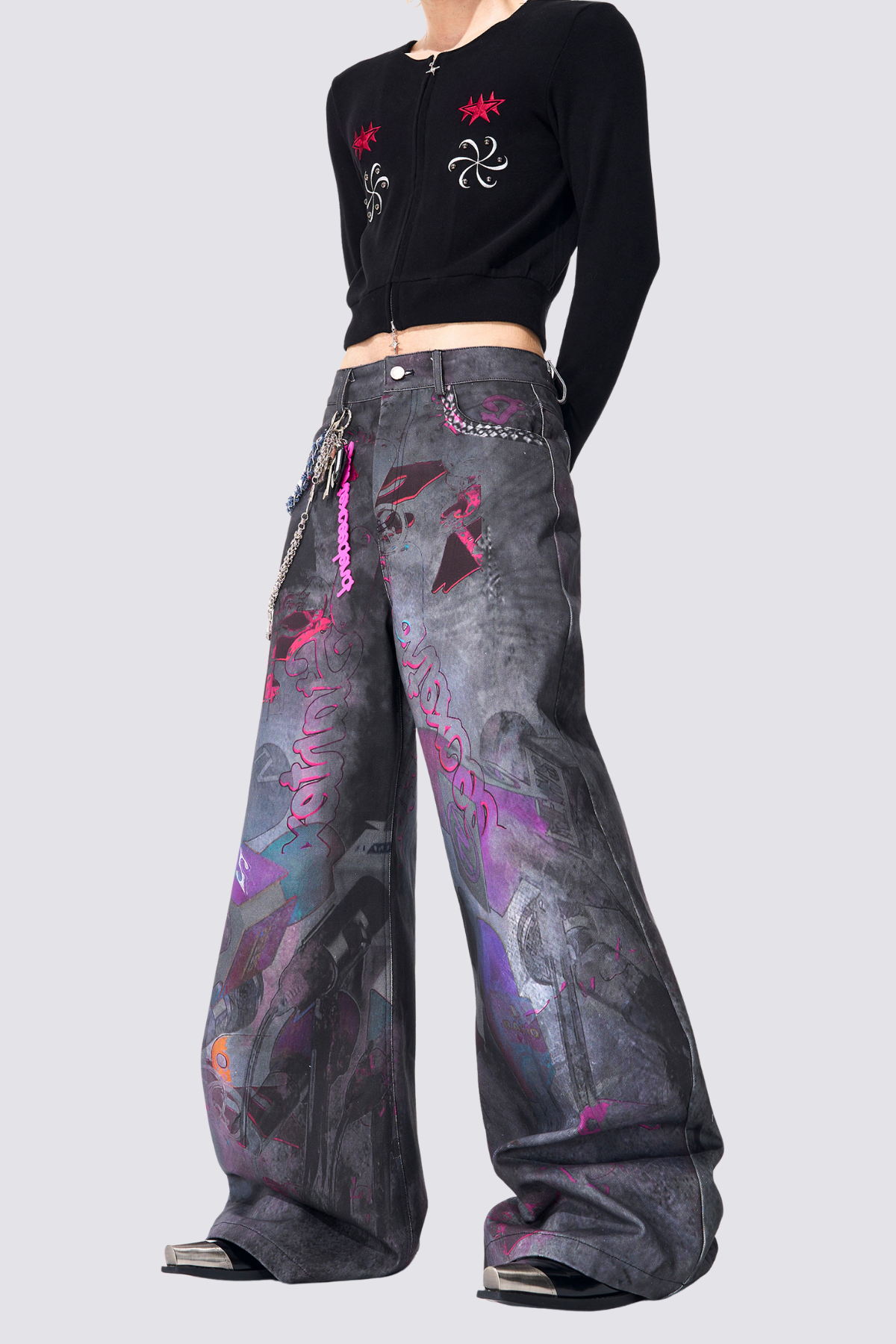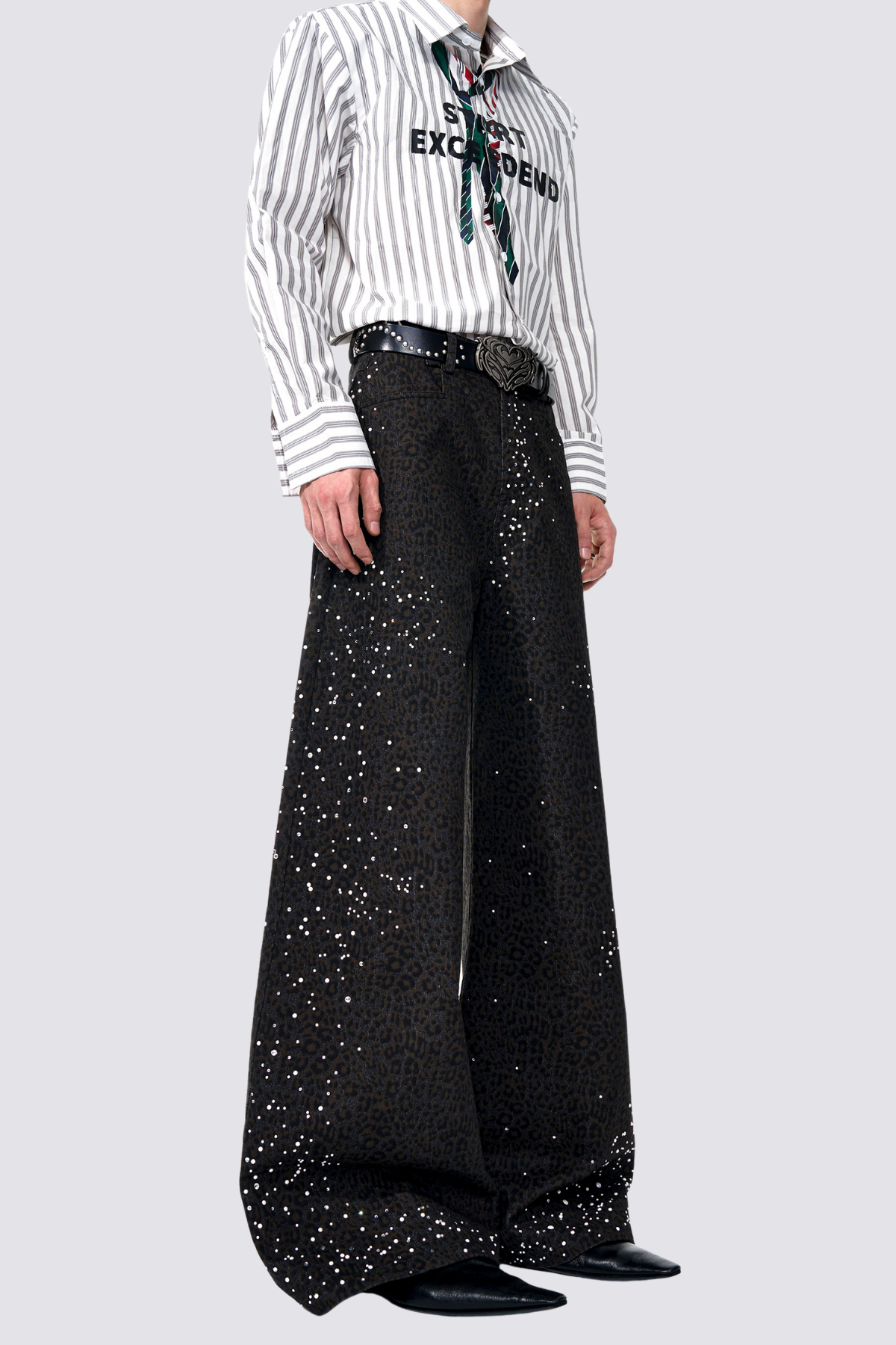 Storm Track Leopard Print Rhinestone Wide Leg Pants