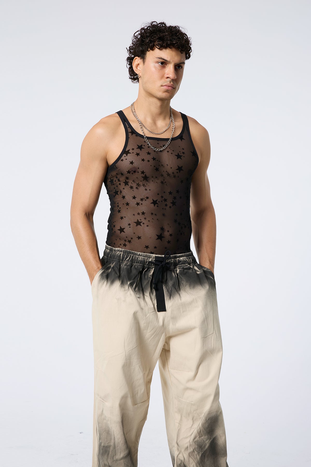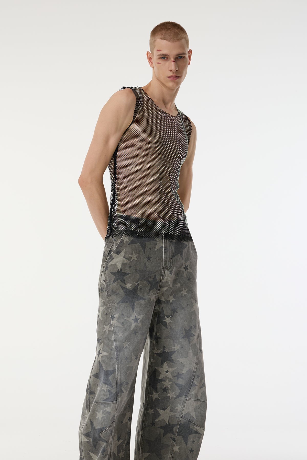 White Veil Star Mesh Sleeveless Top