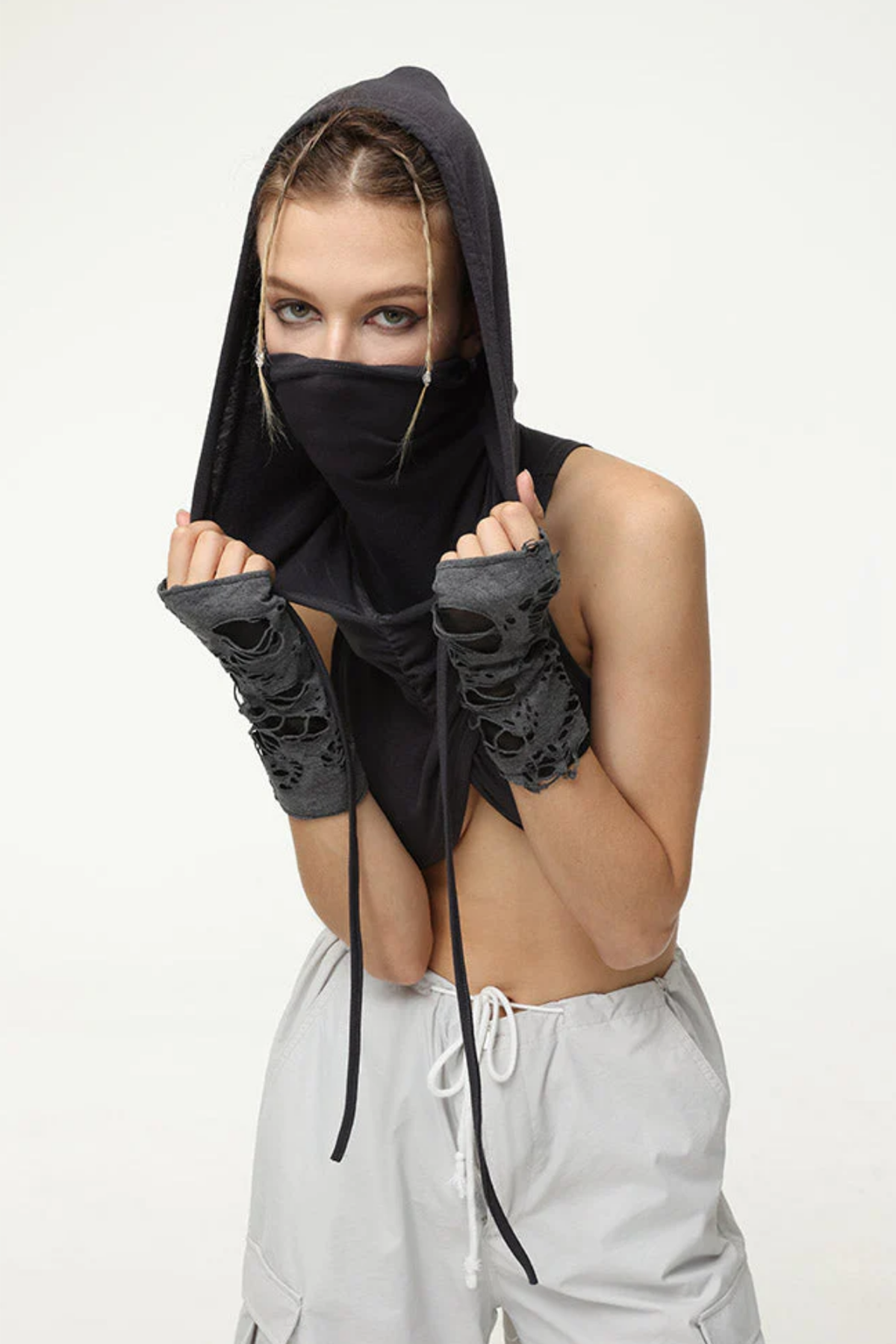 Riot Mode Punk Strapless Fishbone Buckle Top