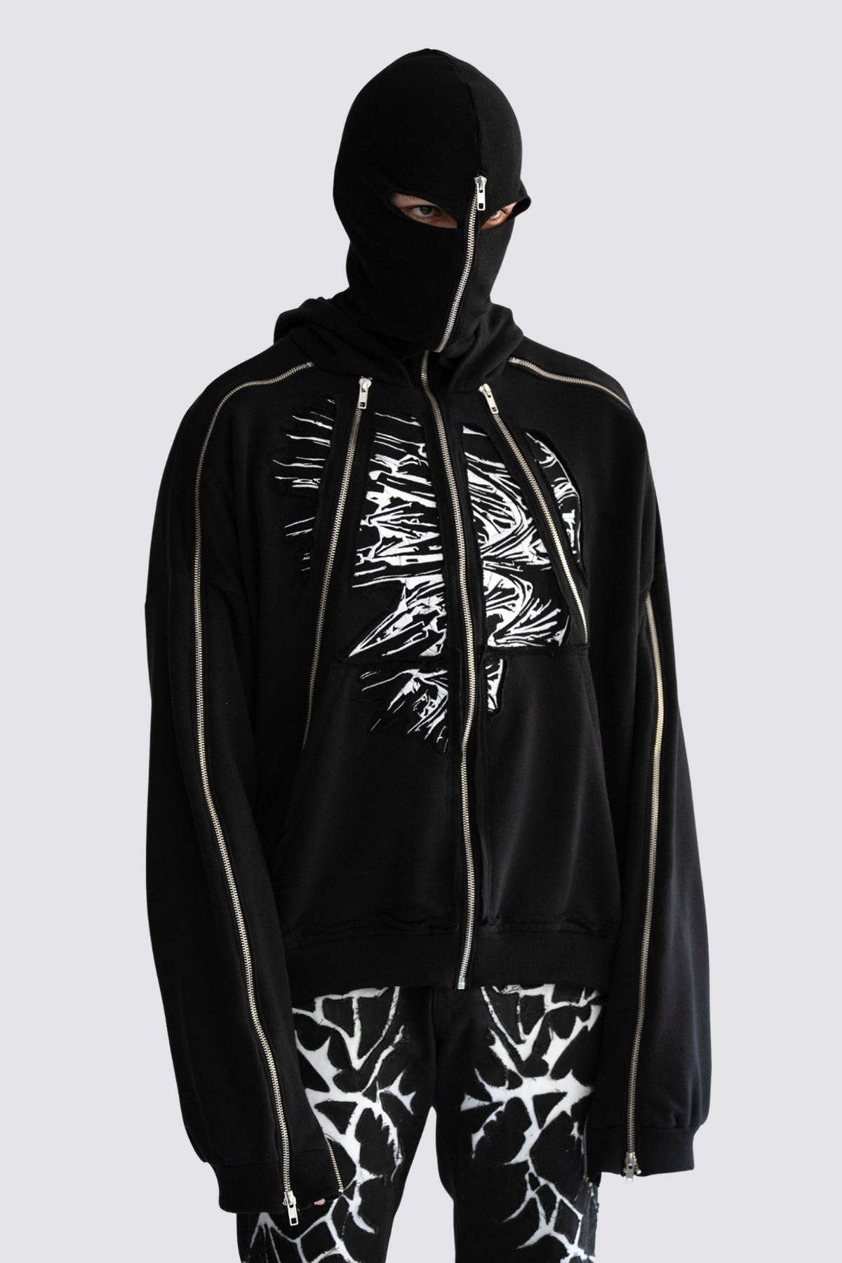Crystal Beam Skeleton Diamond Zipper Hoodie