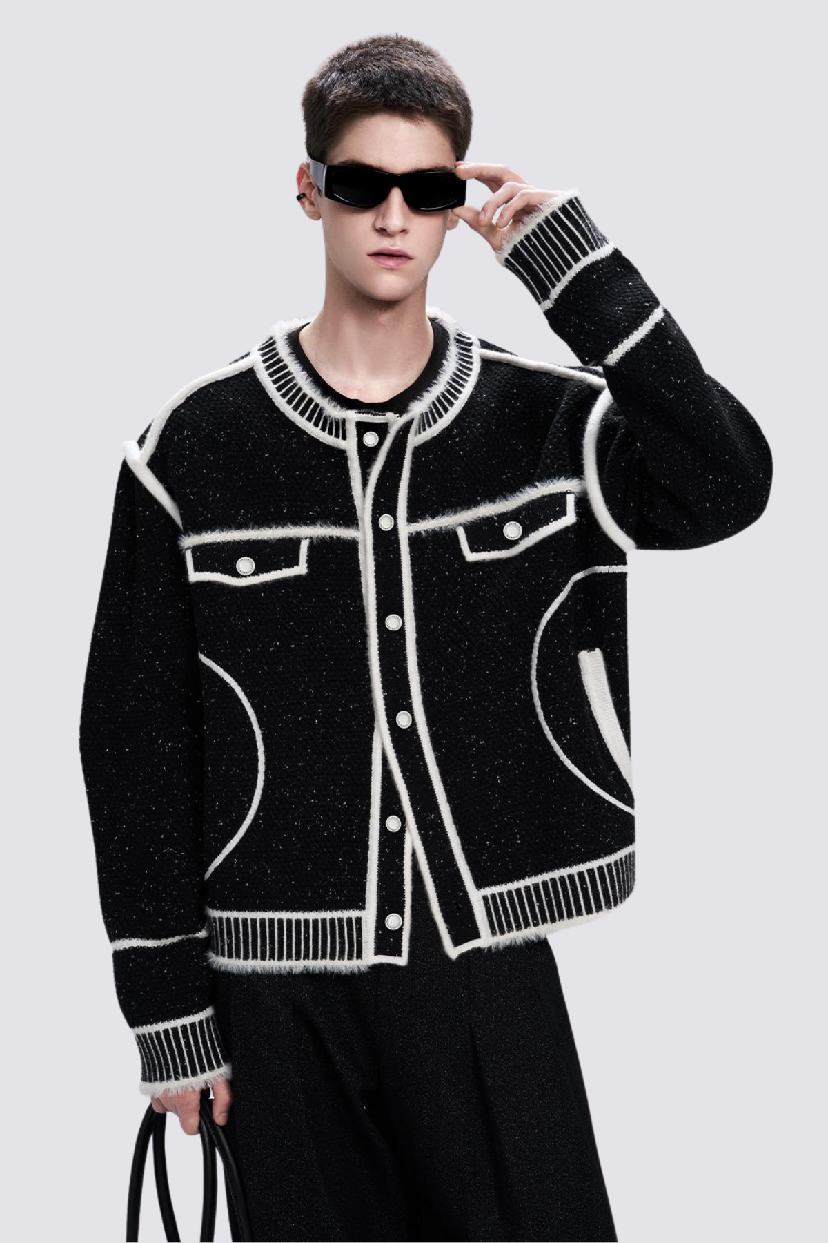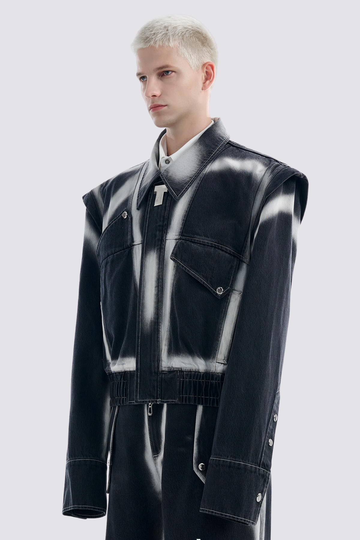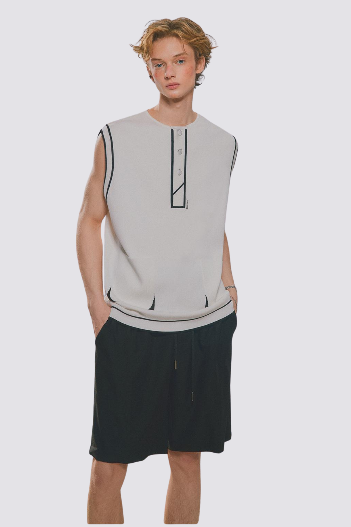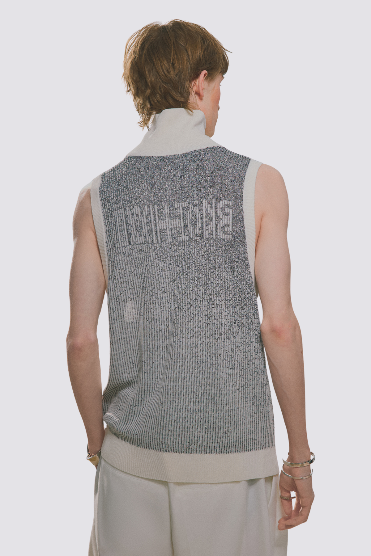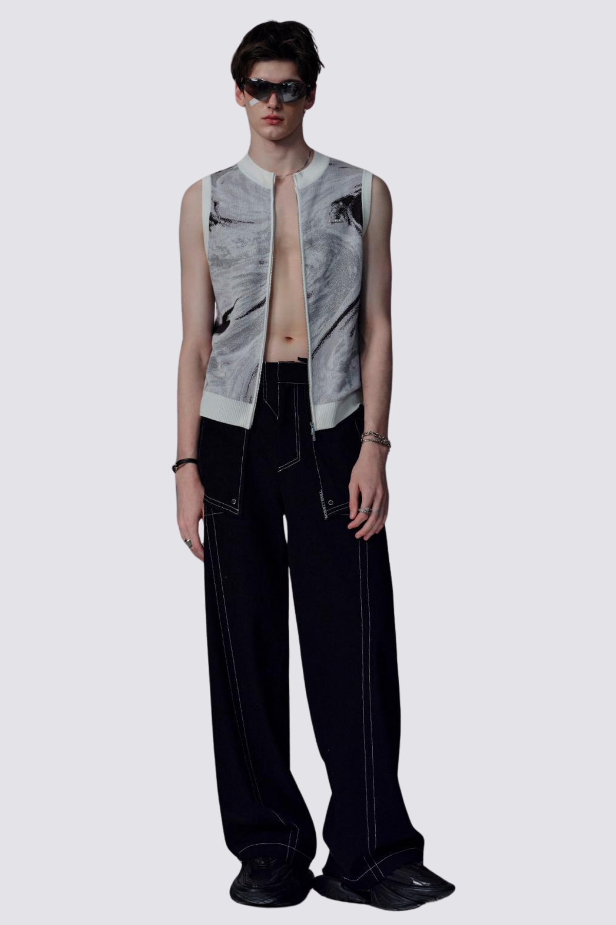 Bleak Pattern Jacquard Zipper Sleeveless Top White