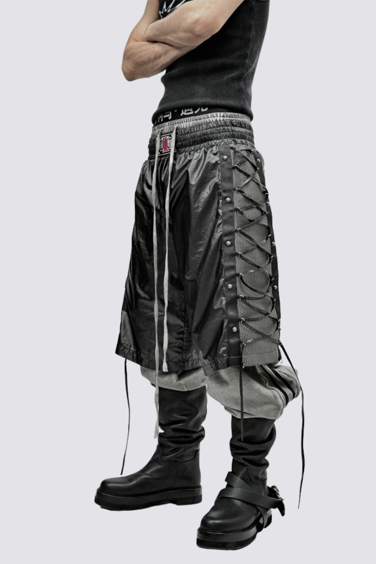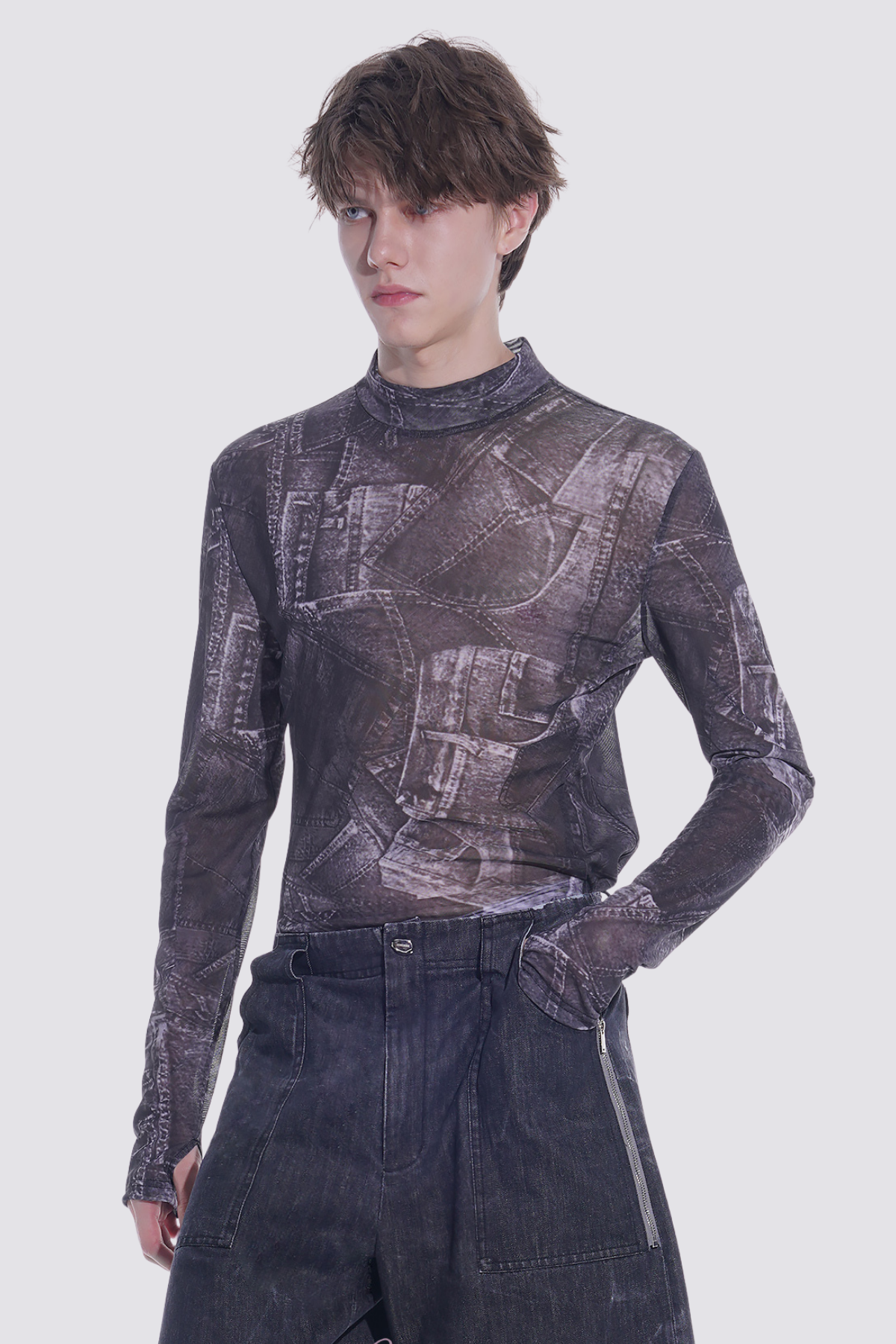 Shadow Layer Print Long Sleeve Mesh Top Black