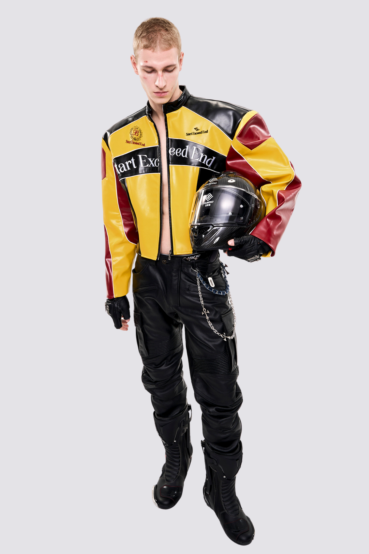 Dense Cut Embroidery Leather Crop Jacket
