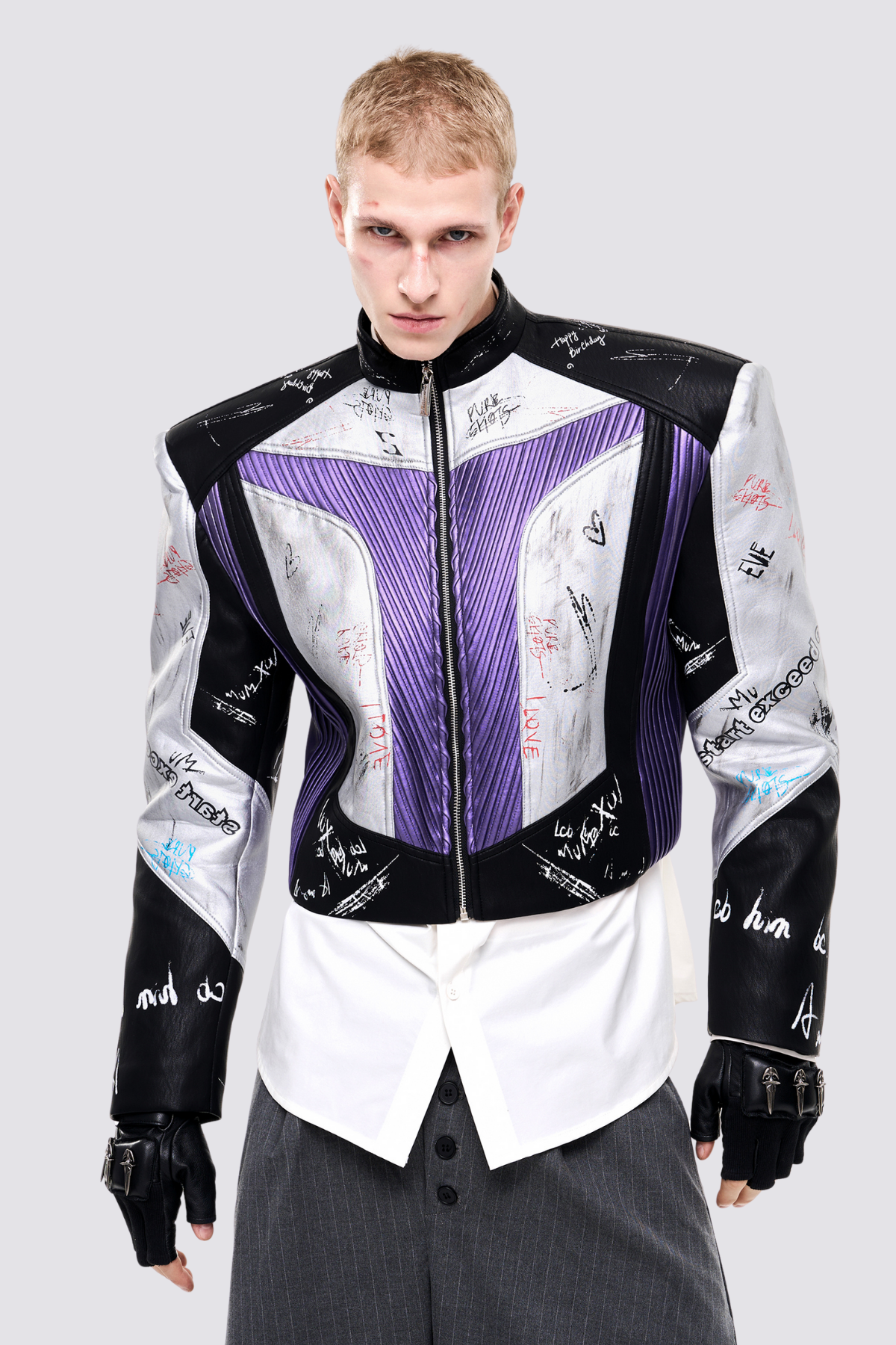 Frame Circuit Leather Print Crop Jacket Purple