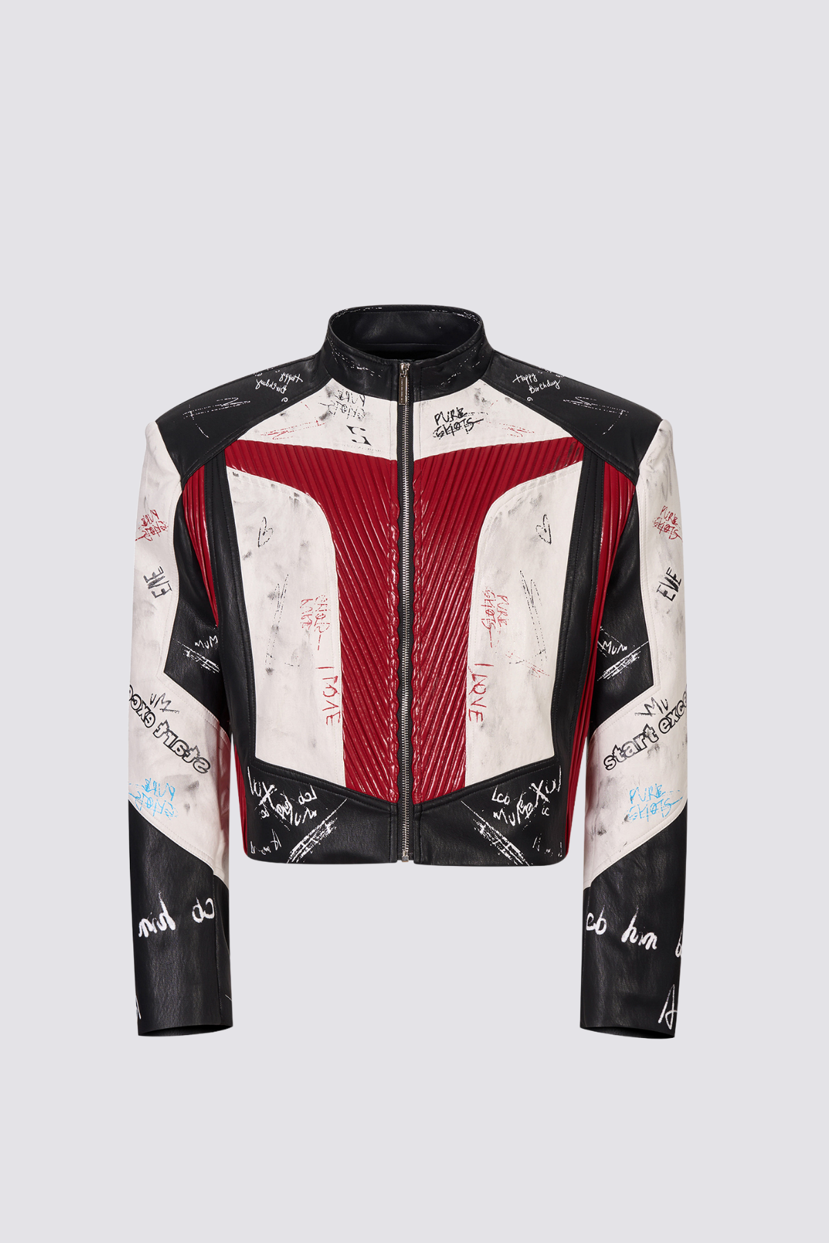 Frame Circuit Leather Print Crop Jacket Red