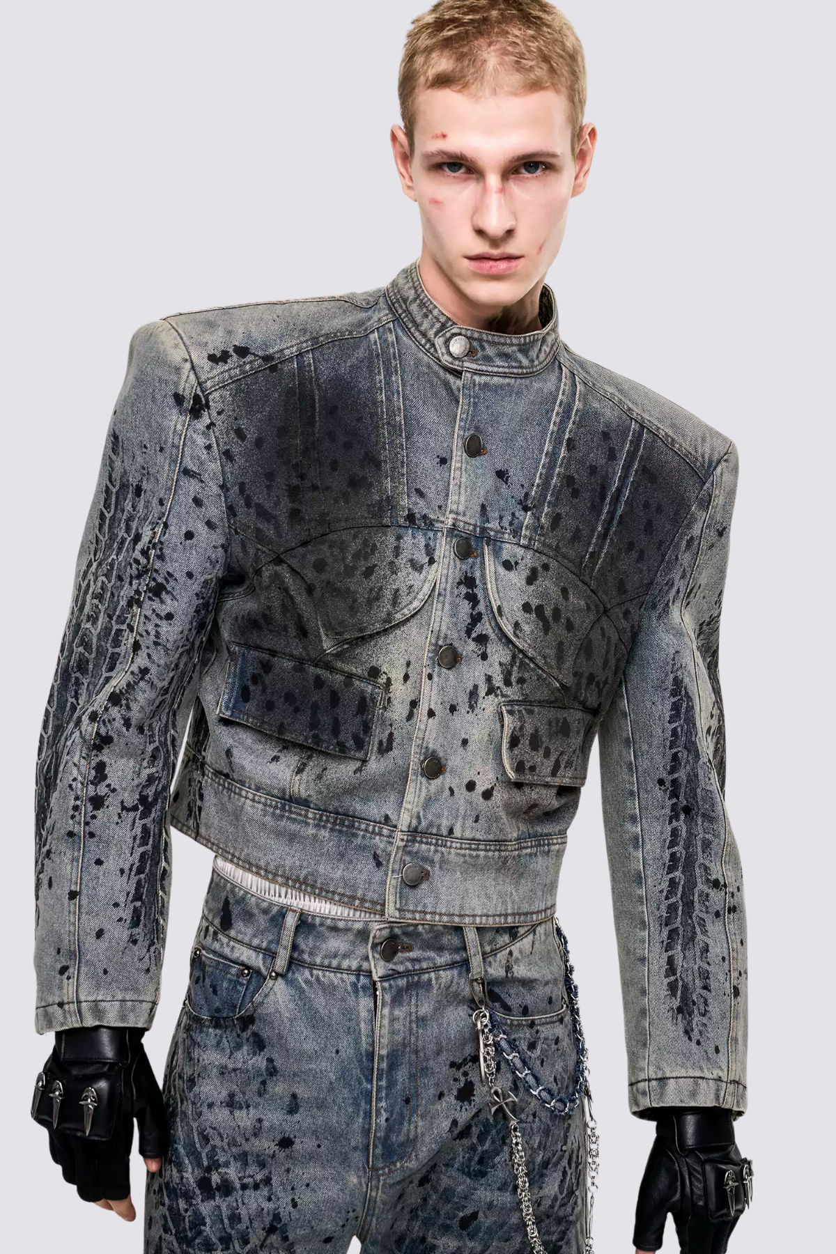 Rebel Wash Print Denim Crop Jacket