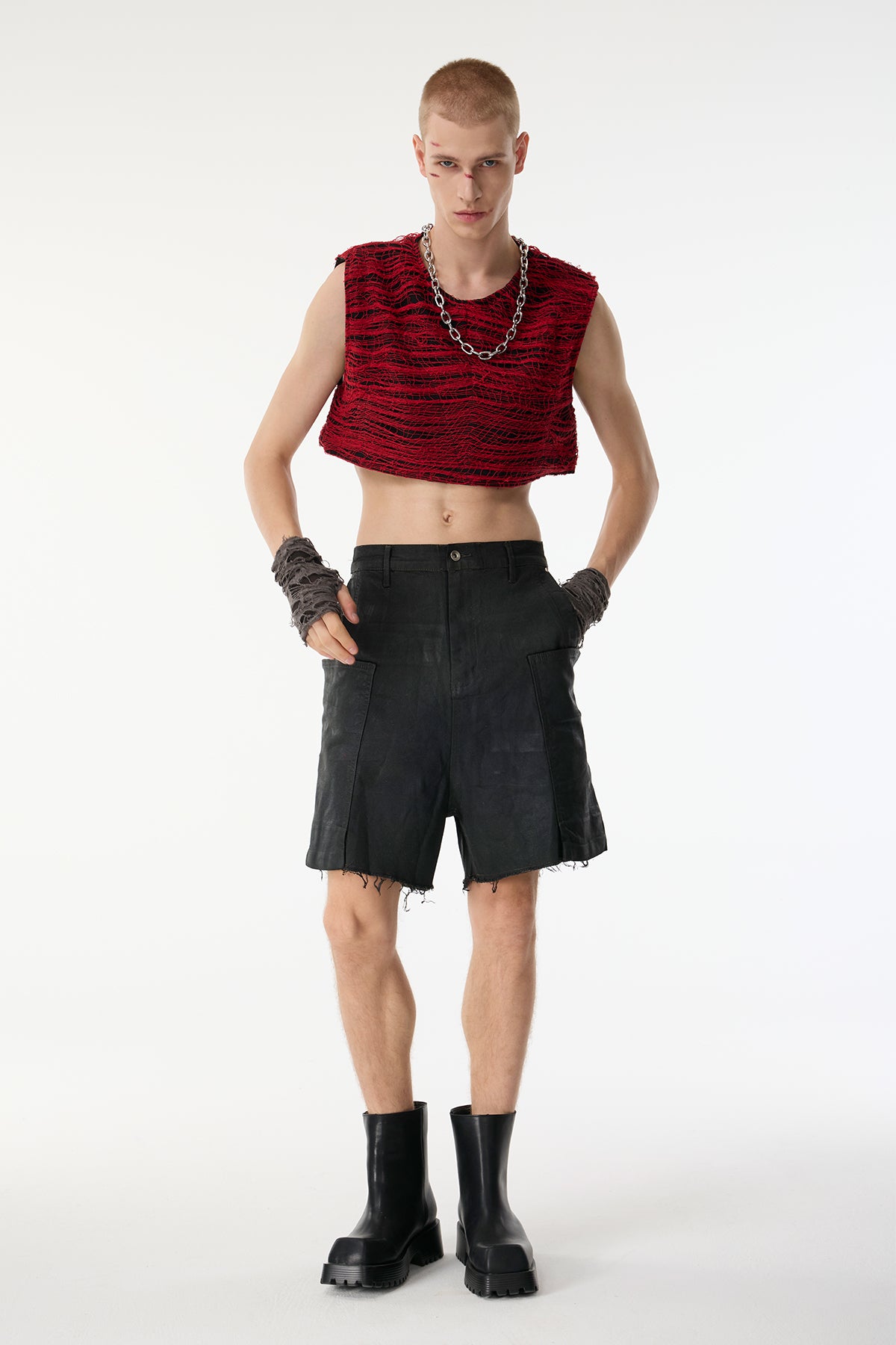 Noir Plate Leather Deconstructed Crop Jacket