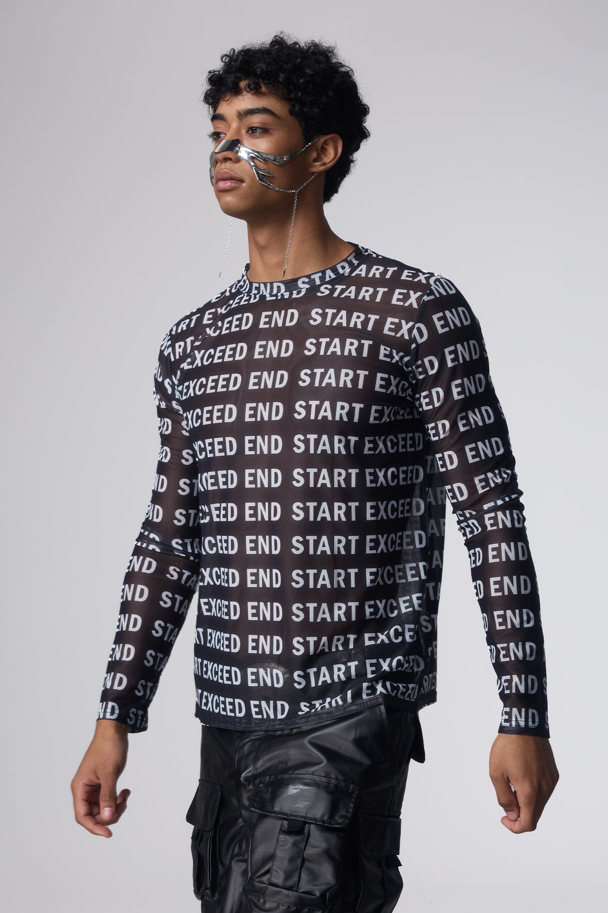 Mist Trace Letter Print Mesh Top