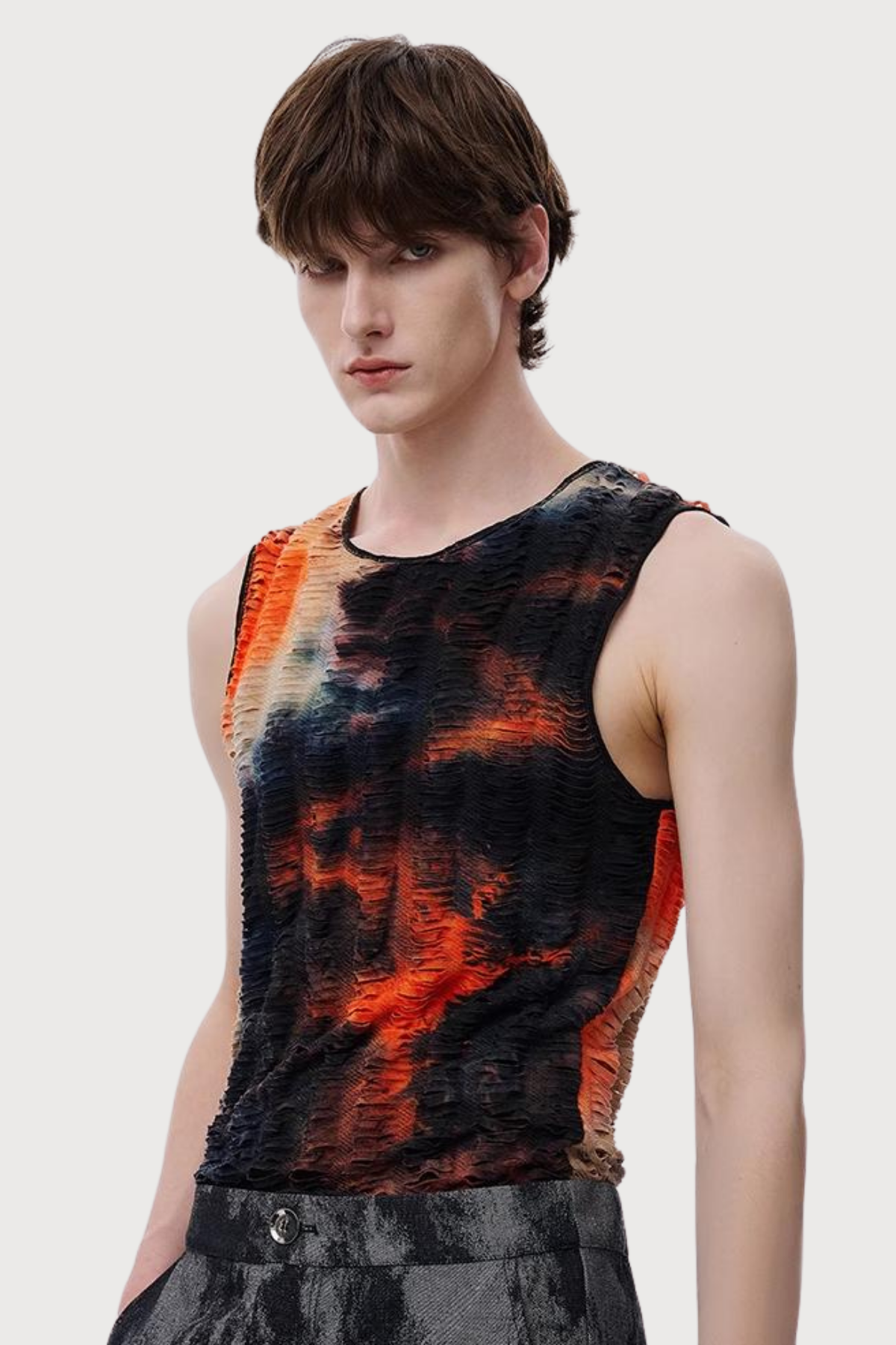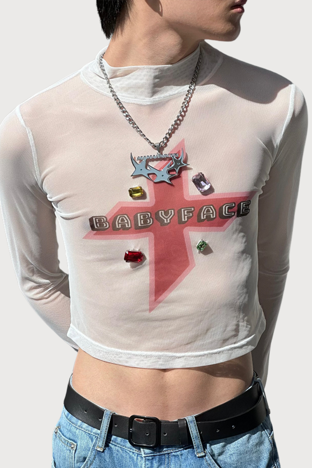 Ghost Wave Long Sleeve Print Mesh Bodysuit