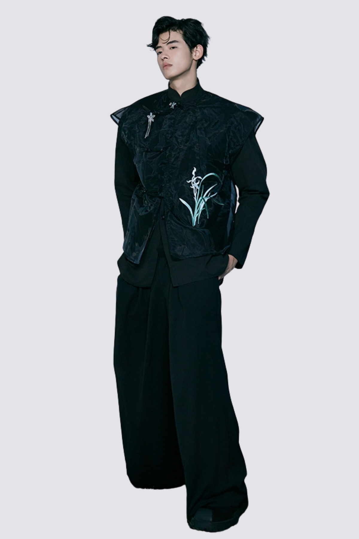 Dust Phase Dragon Embroidery Sleeveless Mini Dress
