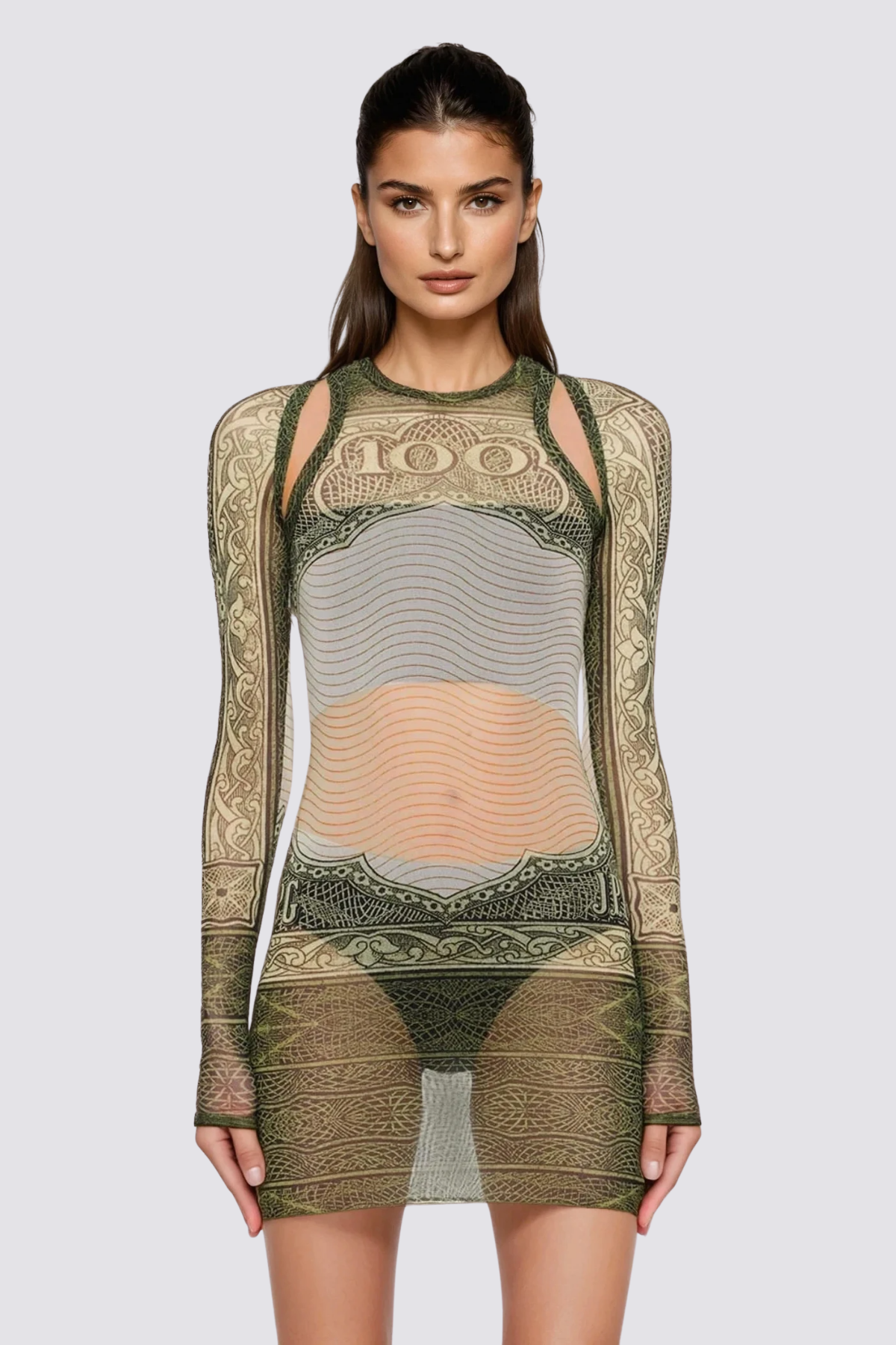 Glimmer Burst Long Sleeve Rhinestone Mesh Crop Top