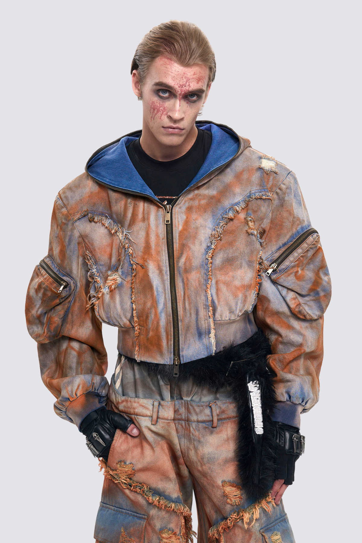 Crystal Beam Skeleton Diamond Zipper Hoodie