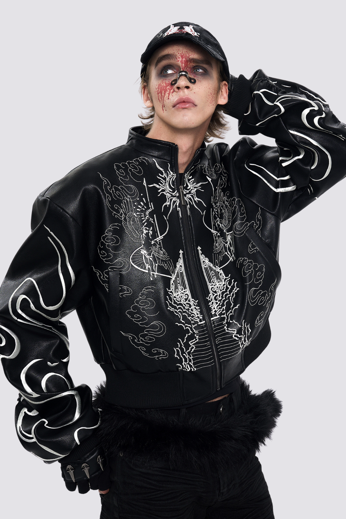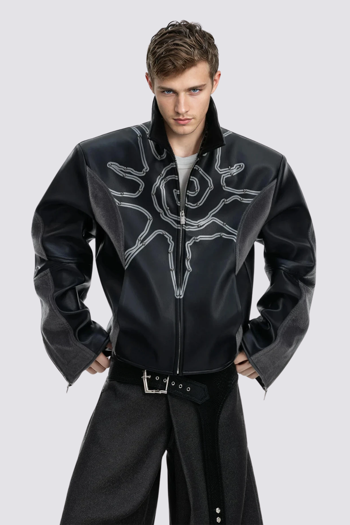 Night Gear Leather Fur Trimmed Rivet Jacket