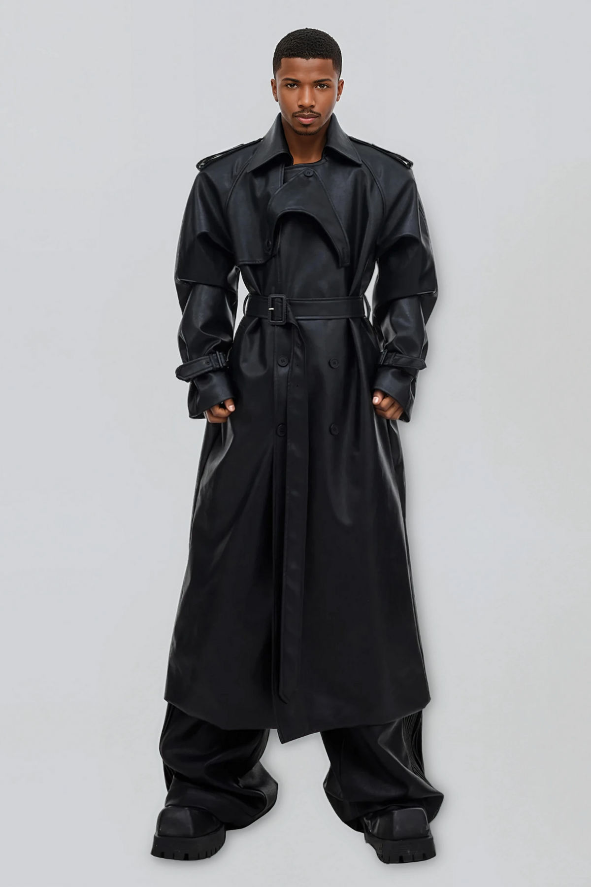 Cold Glint Deconstructed Leather Cape