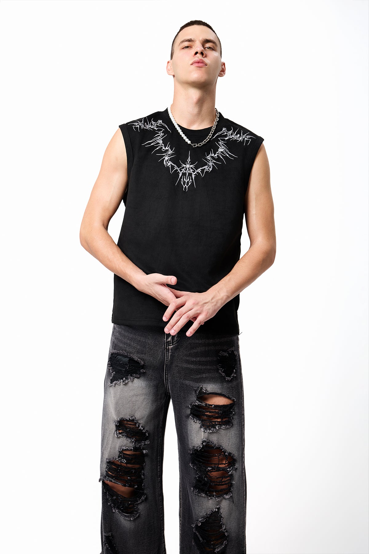 Dust Text Dye Cutout Vest