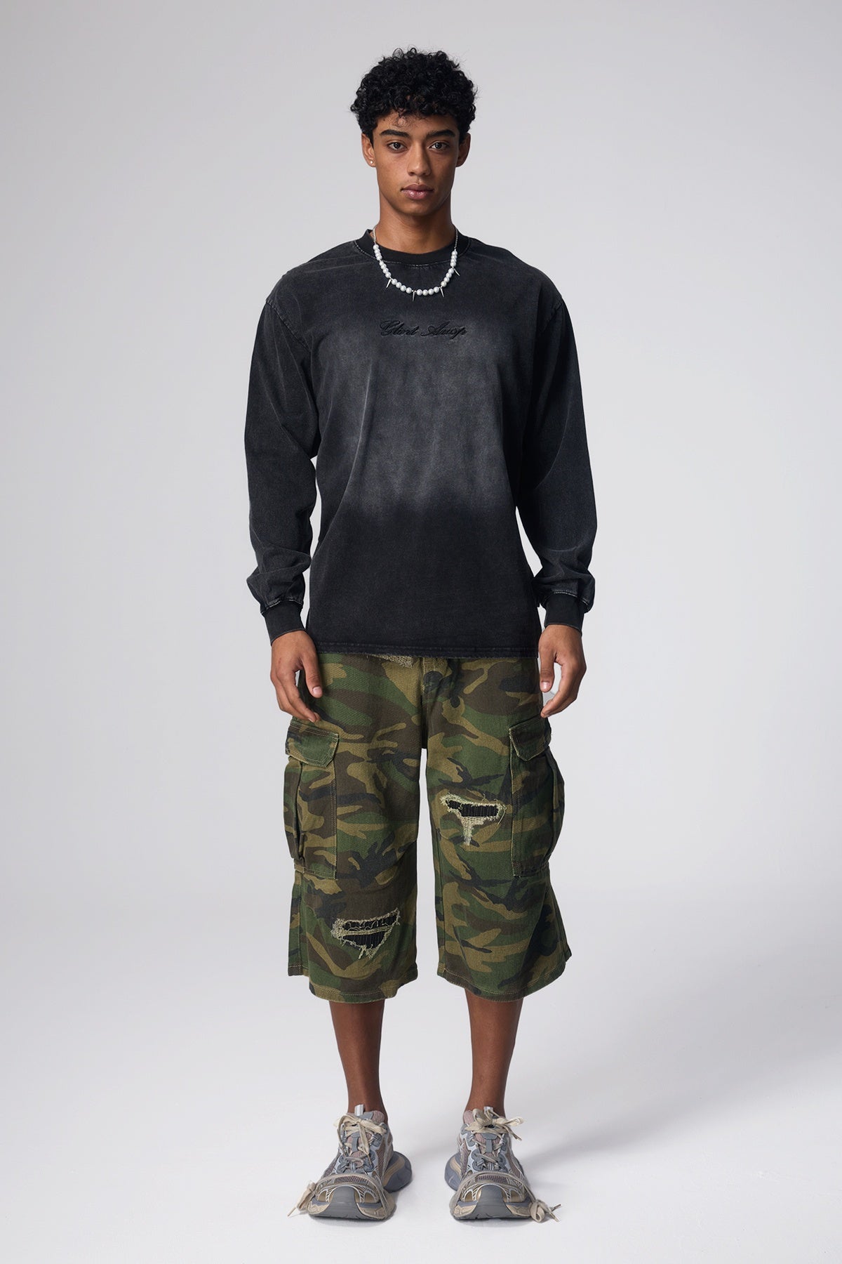 Light Contrast Print Long Sleeve Top Black