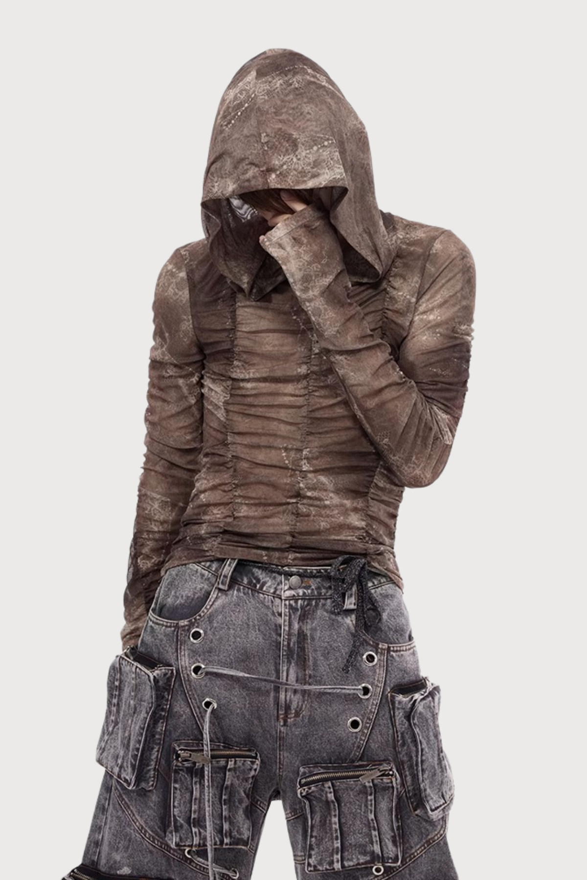 Split Shell Long Sleeve Pleated Mesh Hoodie