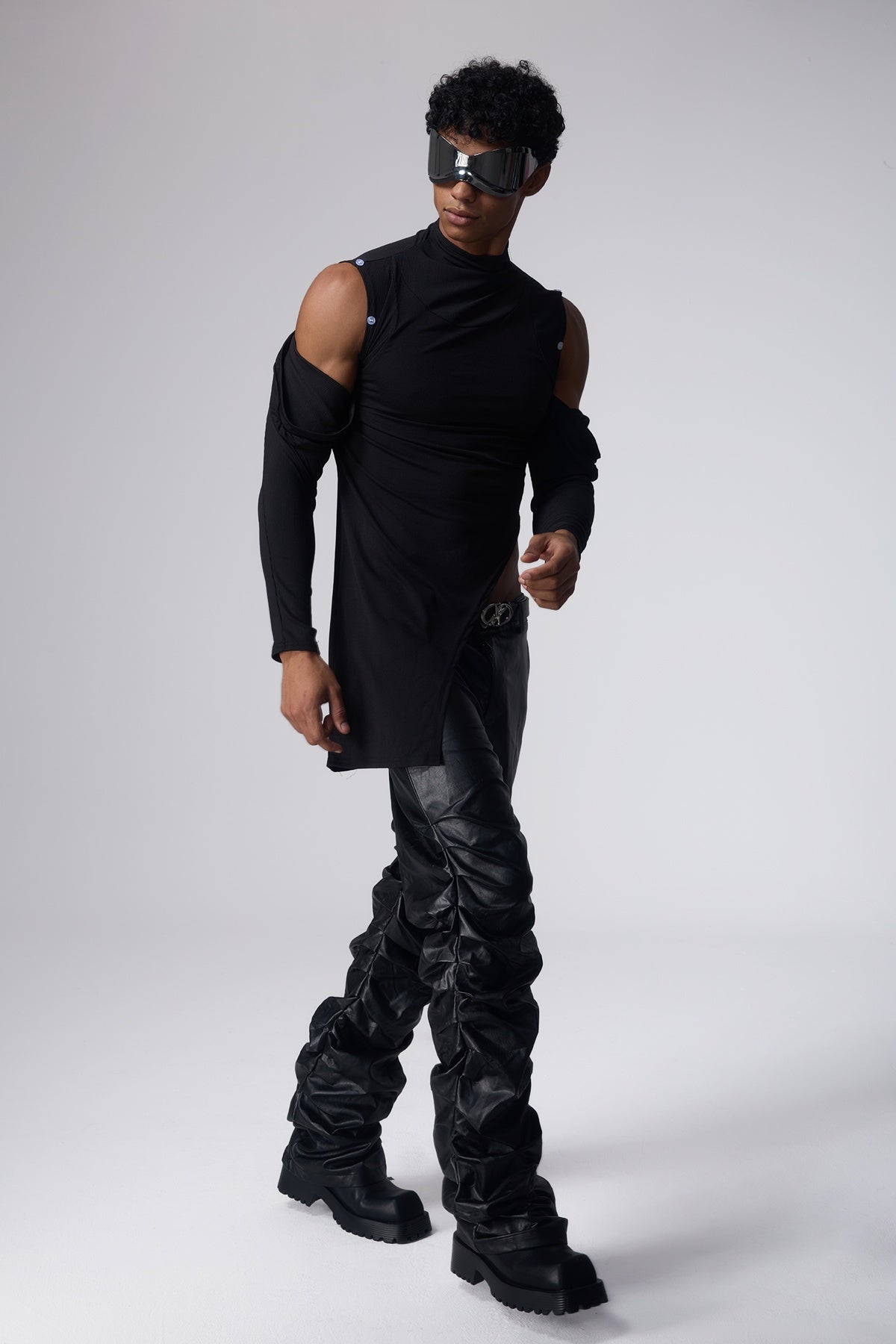 Steel Ghost Zipper Long Sleeve Top Black