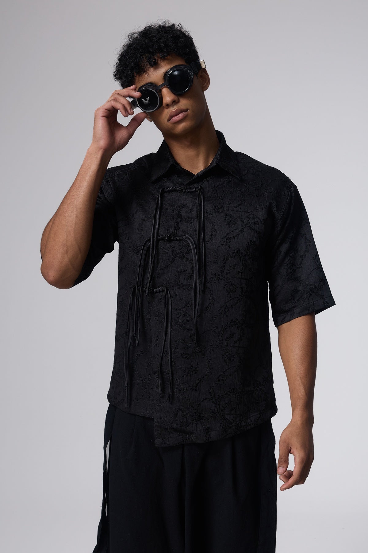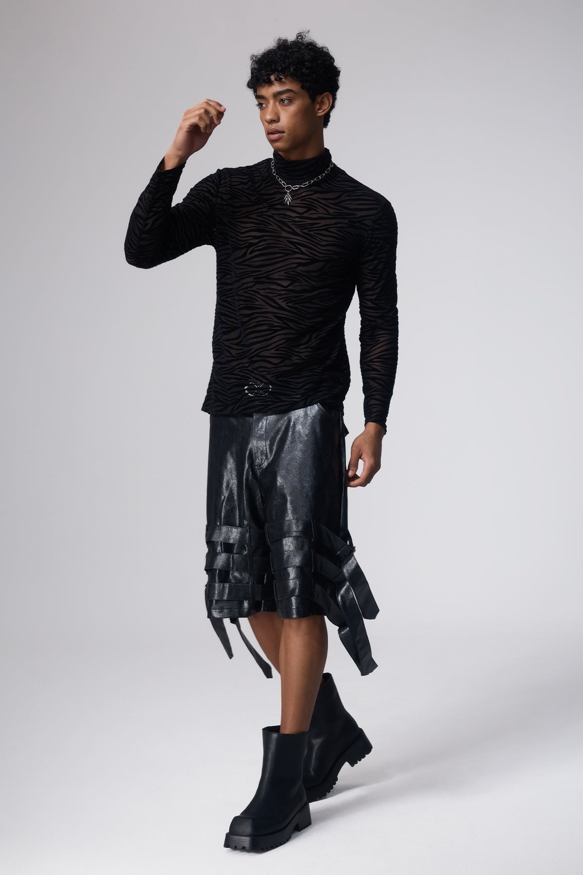 Shadow Layer Print Long Sleeve Mesh Top Black