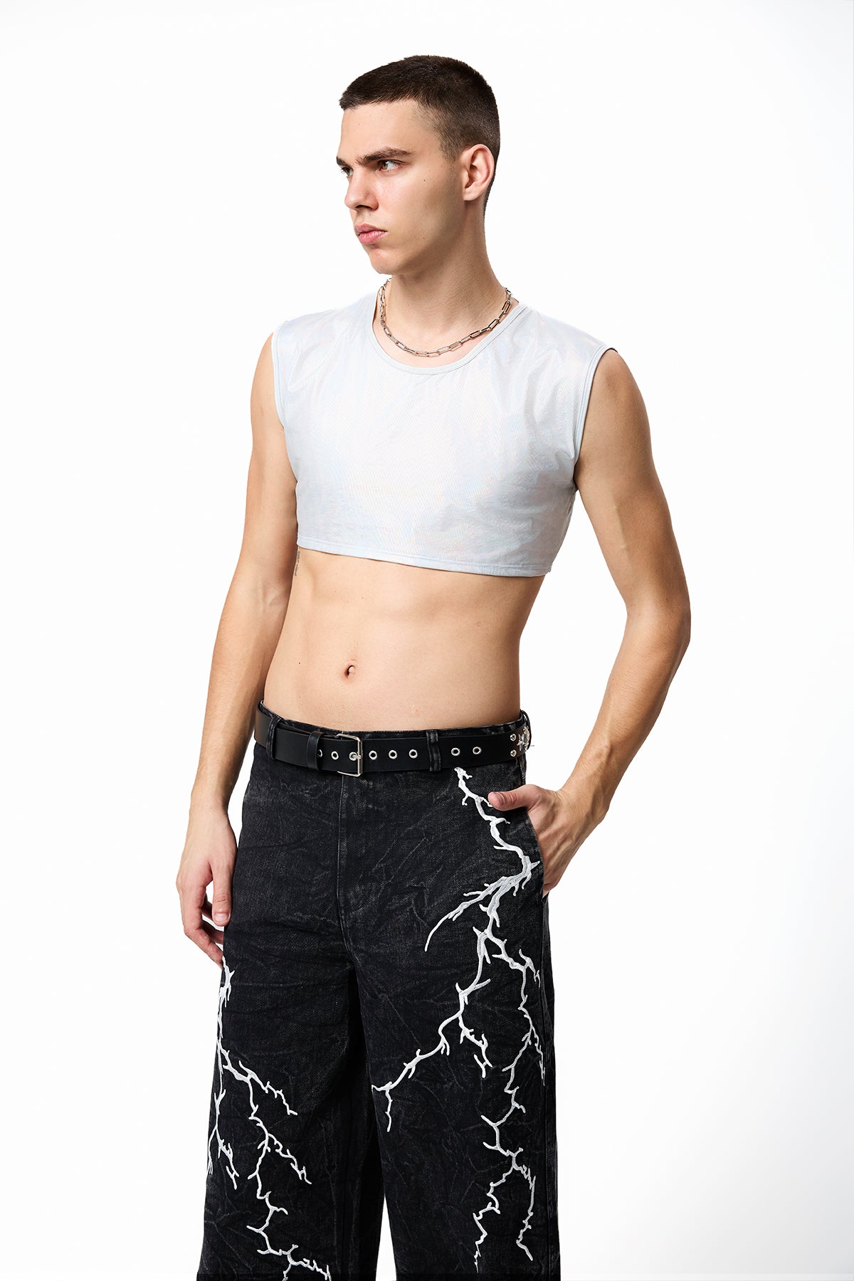 Bleak Pattern Jacquard Zipper Sleeveless Top White
