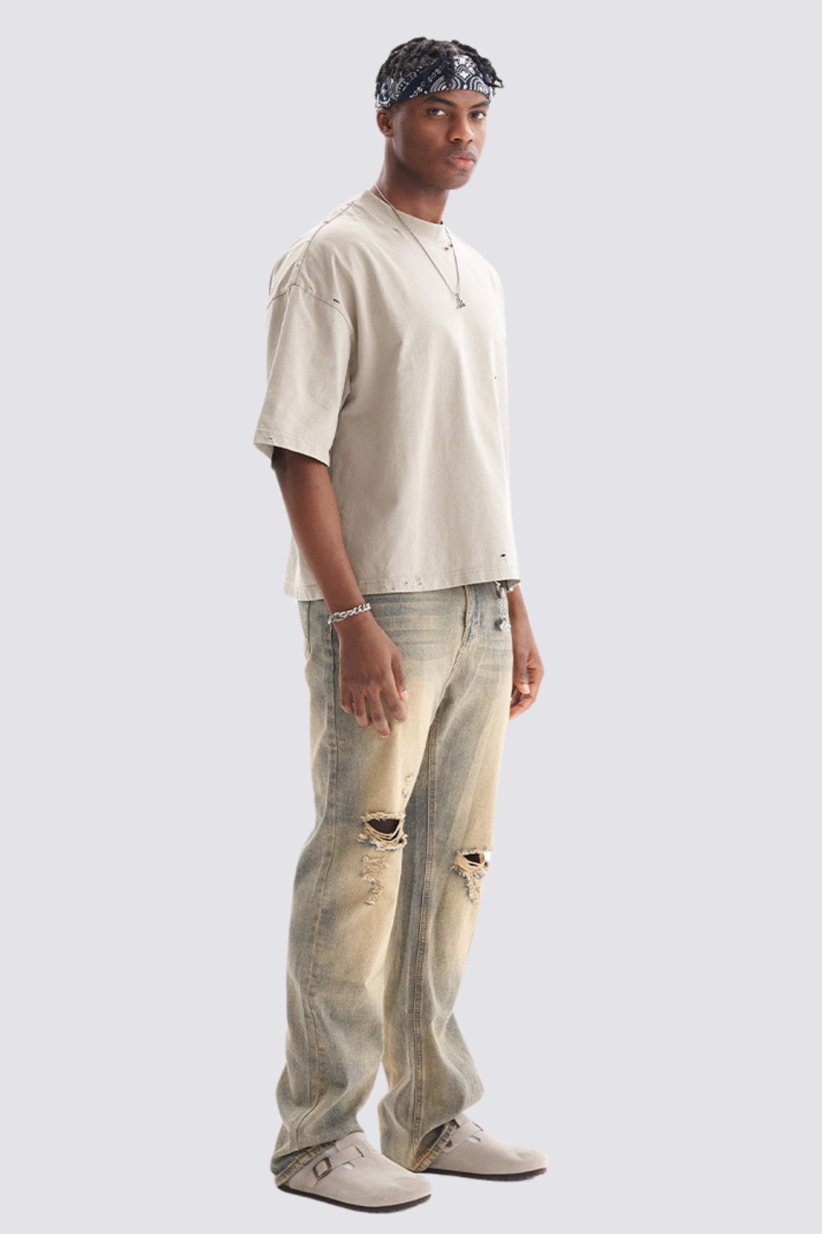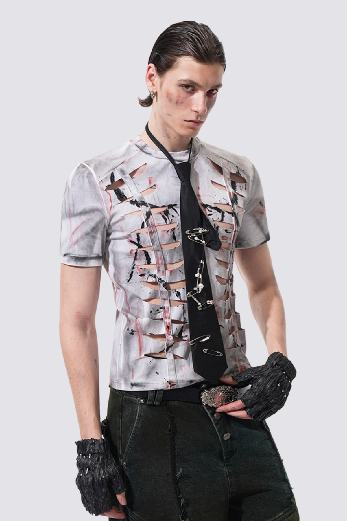 Dunkelbraunes, kurzärmeliges, dekonstruiertes Oberteil