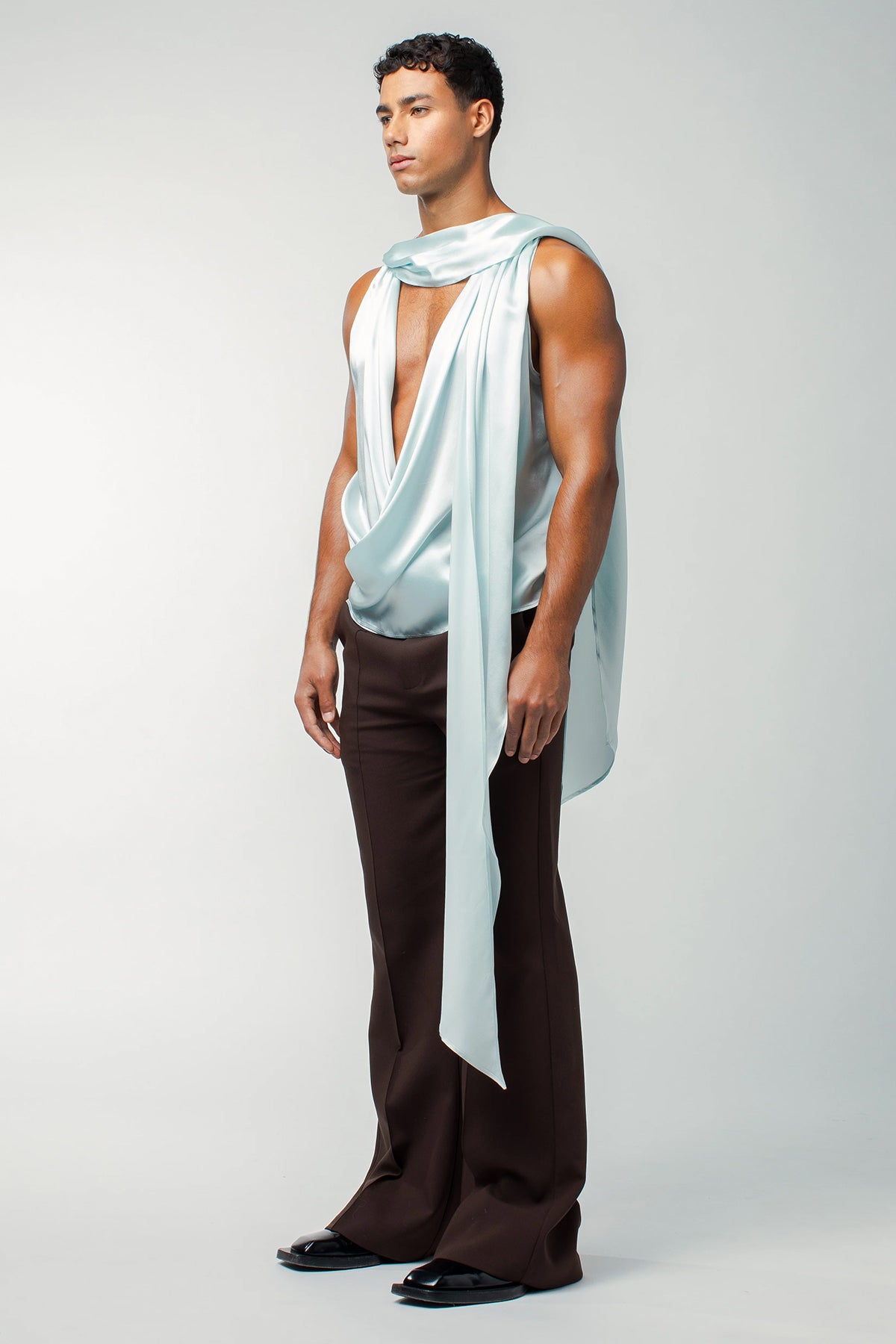 Coal Sheet Ruched Silk Top