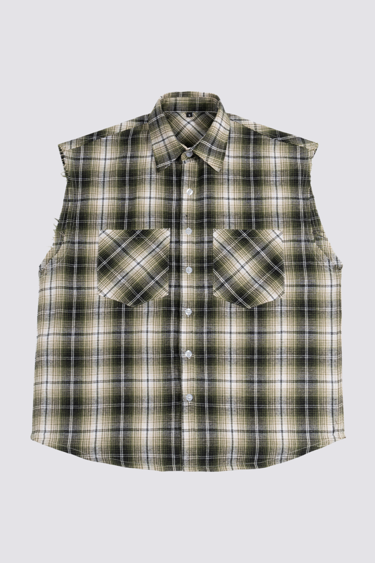 Ghost Fold Mouwloos Geruit Overhemd Groen