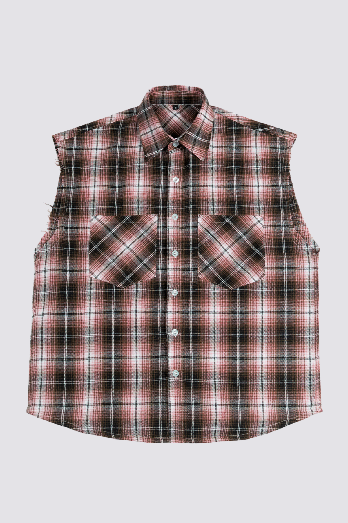 Ghost Fold Mouwloos Geruit Overhemd Rood