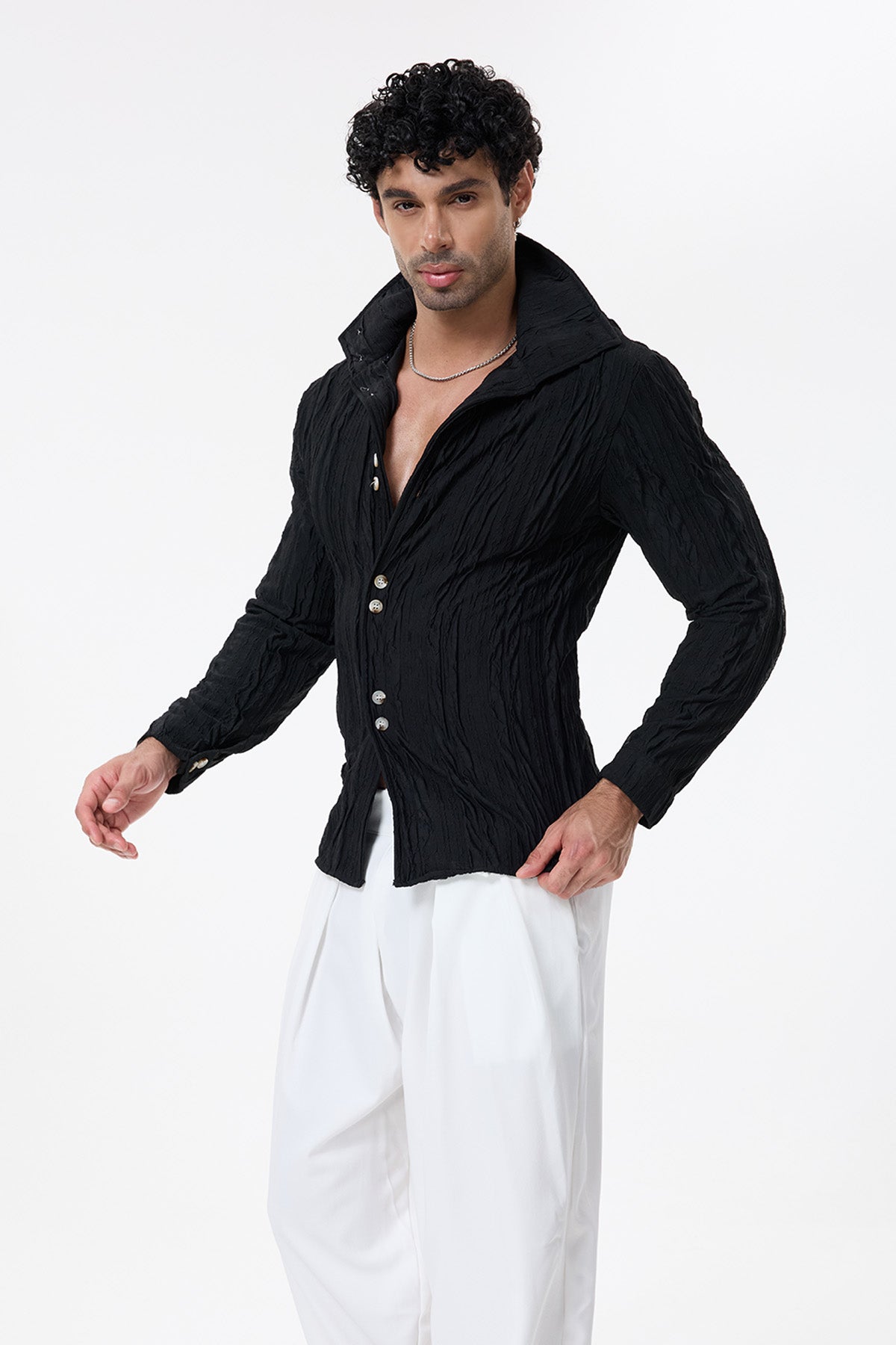 Jet Wrap Deconstructed Crop Shirt Black