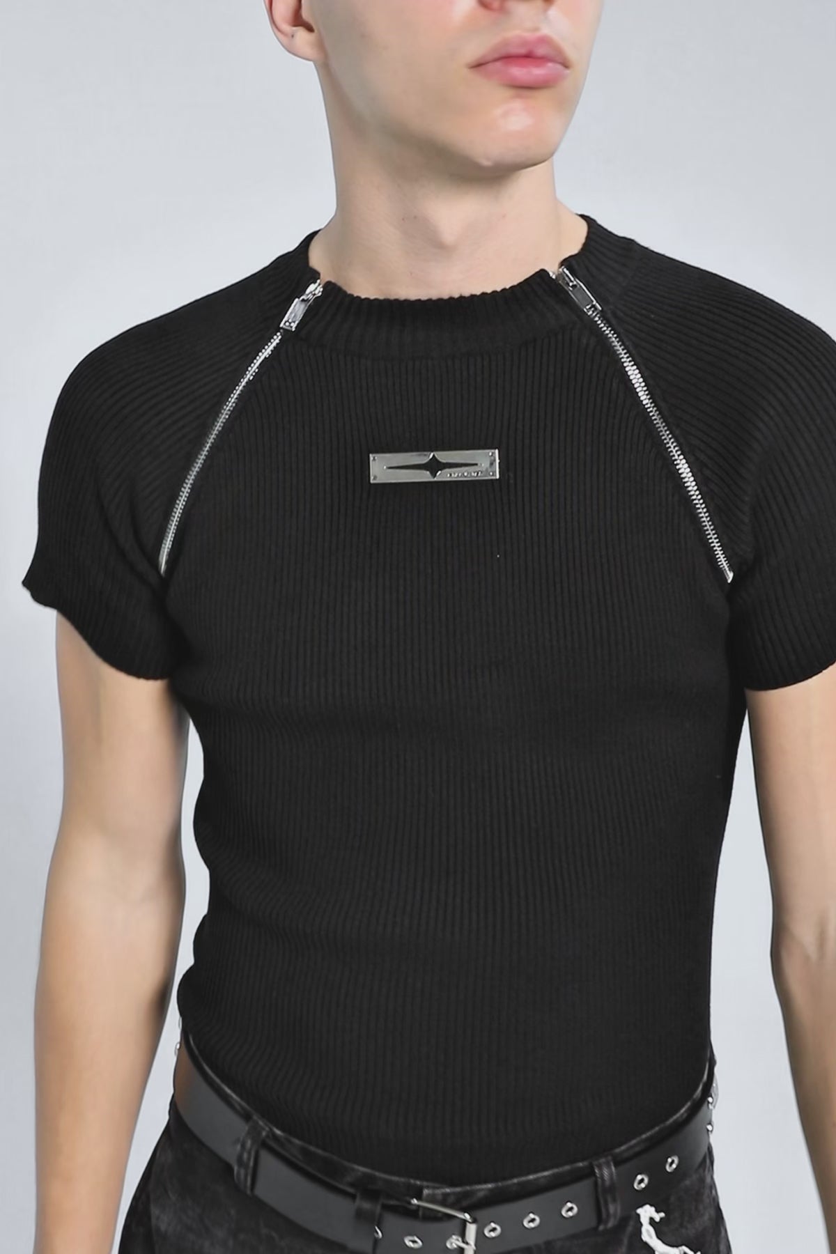 Elevate your wardrobe with our Clean Noir Zipper Knit Top. This sophisticated piece combines luxurious knit fabric with sleek zipper detailing for a contemporary silhouette. The versatile noir shade transitions effortlessly from day to evening, while the refined construction ensures both comfort and elegance. A quintessential statement piece for the discerning fashion enthusiast.