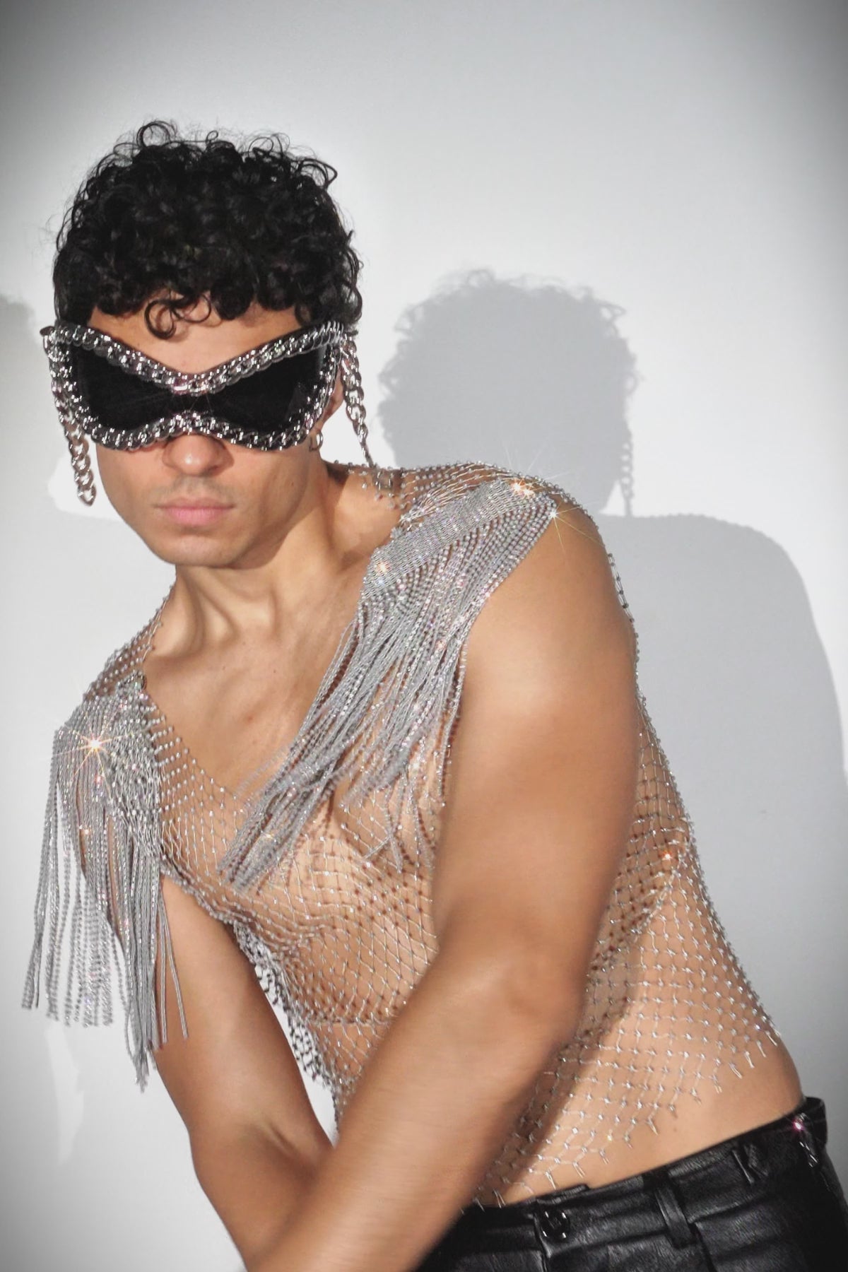 Elevate your style with the Dazzle Line Rhinestone Mesh Fringe Top, designed to catch every eye. Featuring shimmering rhinestones and delicate mesh fringe, this top adds dynamic movement and sparkle to your look. Perfect for nights out or special occasions, it effortlessly combines glamour with playful elegance to make you stand out with confidence.