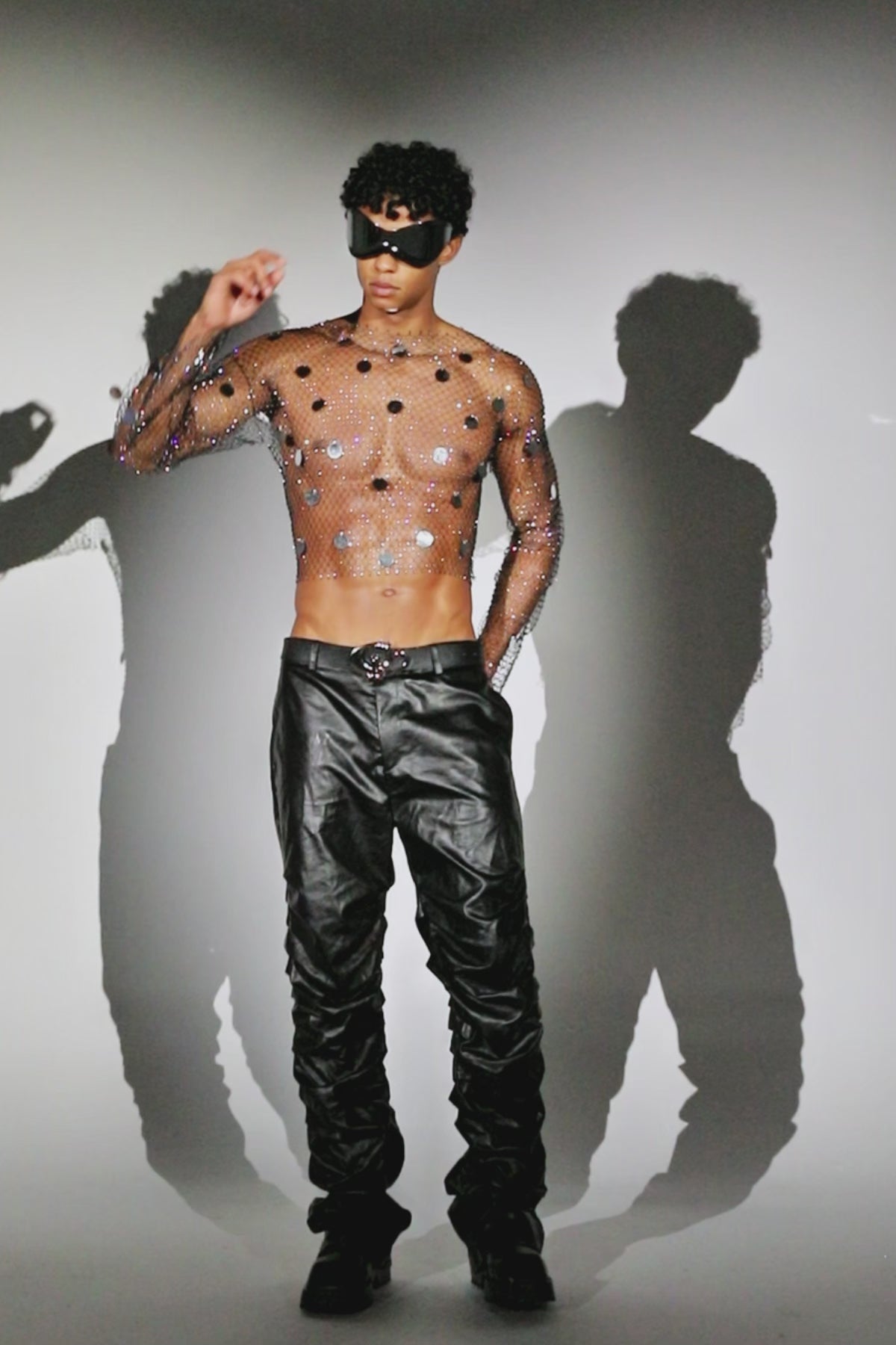 Elevate your style with the Glimmer Burst Long Sleeve Rhinestone Mesh Crop Top. This eye-catching piece features delicate mesh fabric adorned with sparkling rhinestones, creating a radiant shimmer that catches every glance. Its cropped fit and long sleeves balance boldness with elegance, making it perfect for nights out or special occasions. Stand out effortlessly and let your confidence shine in this dazzling top.