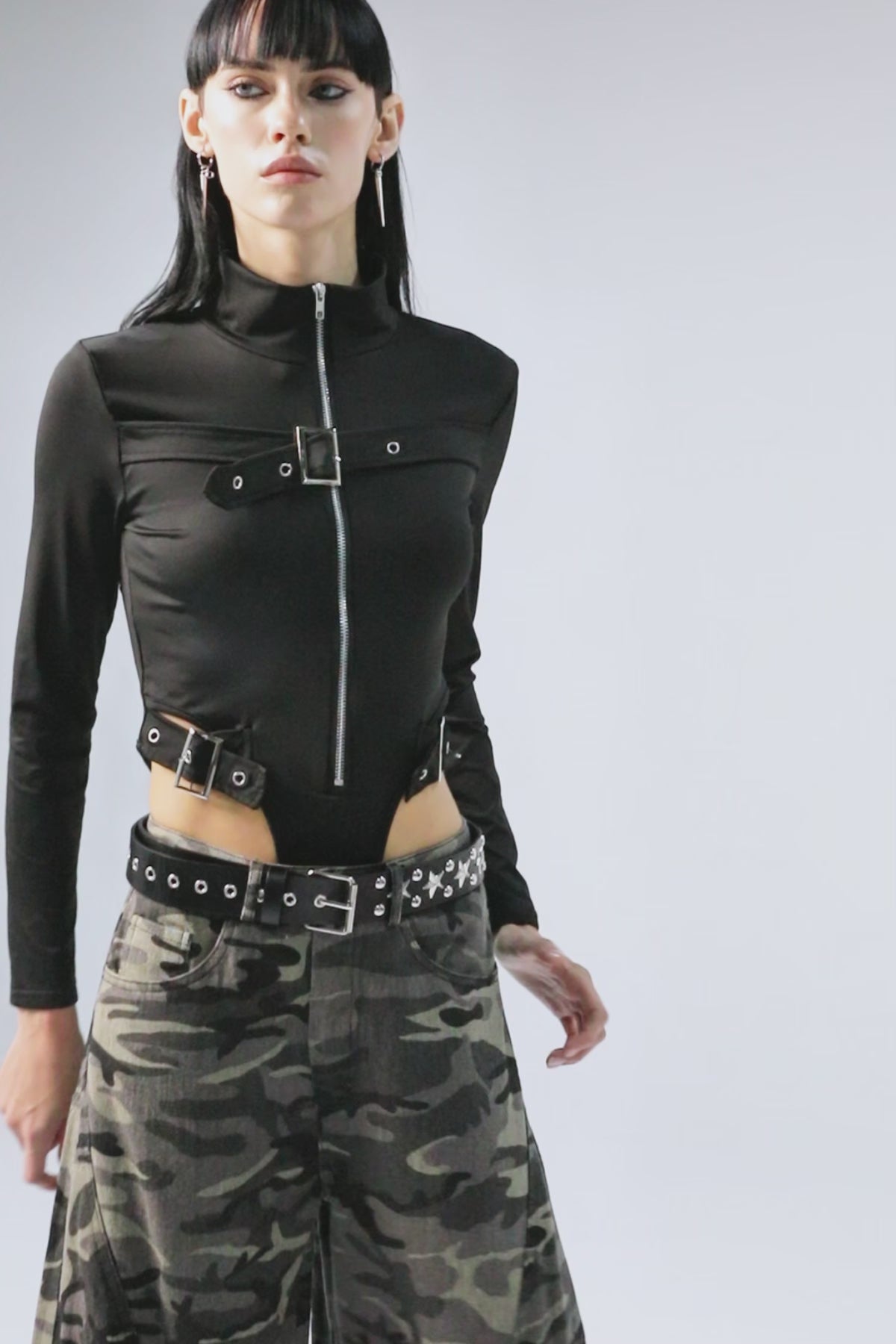 Elevate your style with the Hard Frame Zipper Buckle Bodysuit, designed for a bold and confident look. Featuring a sturdy frame, secure buckle details, and a smooth zipper closure, this bodysuit offers both edgy fashion and a comfortable fit. Perfect for making a statement at any event, it combines durability with sleek design to enhance your silhouette effortlessly.