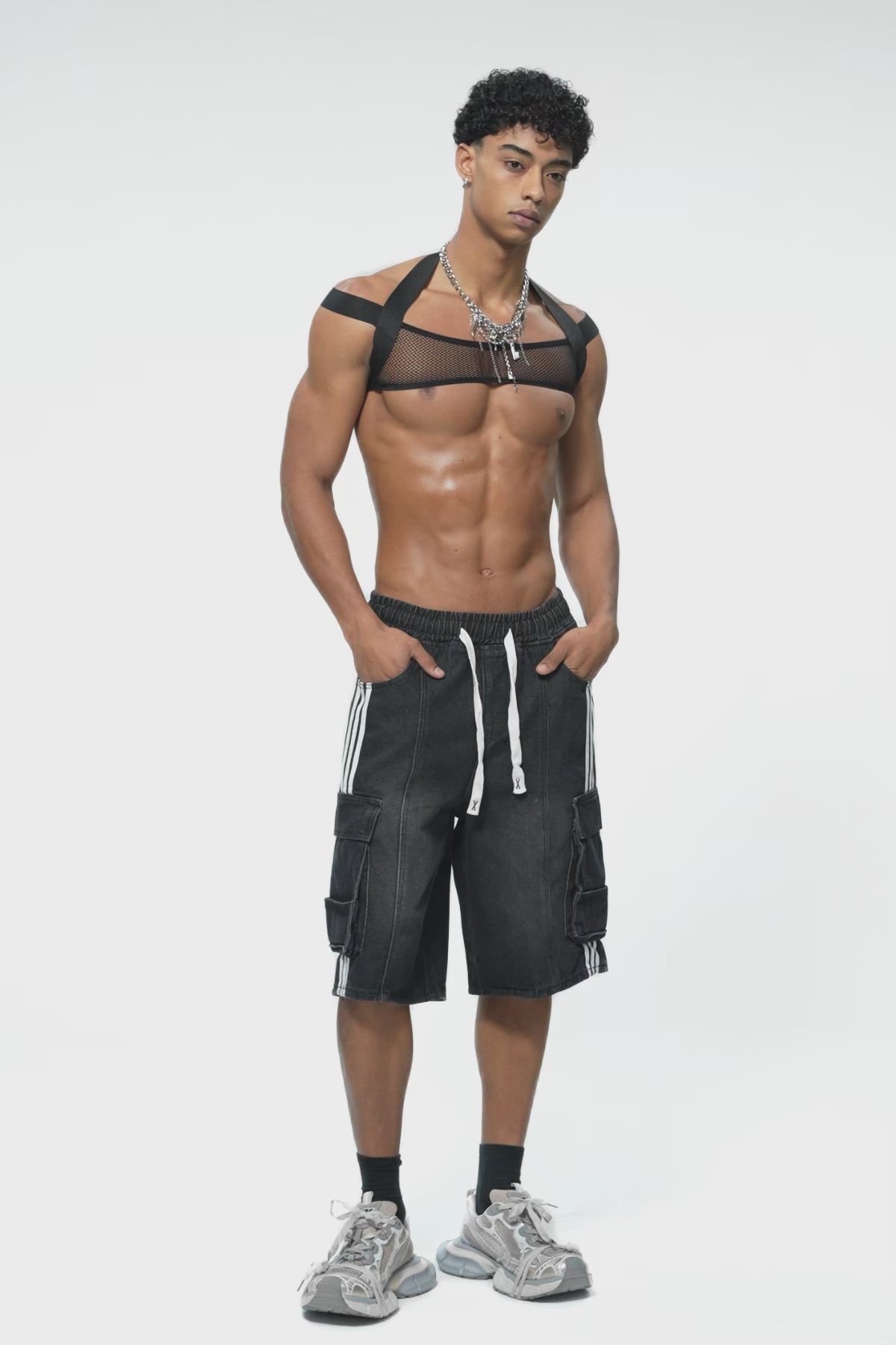 Ice Sheen Fishnet Chest Strap Black Elevate your style with this striking fishnet chest strap, designed to make a bold statement. The delicate yet durable fishnet construction creates an eye-catching geometric pattern that works beautifully as a standalone piece or layered under sheer fabrics. The sleek black finish offers versatile styling options—pair it with evening wear for an edgy touch or incorporate it into your everyday wardrobe for instant attitude. The adjustable fit ensures comfort and confidence, whether you're heading out for a night on the town or making a fashion-forward statement. Transform your look with this essential accessory that combines edge and elegance in one captivating piece.