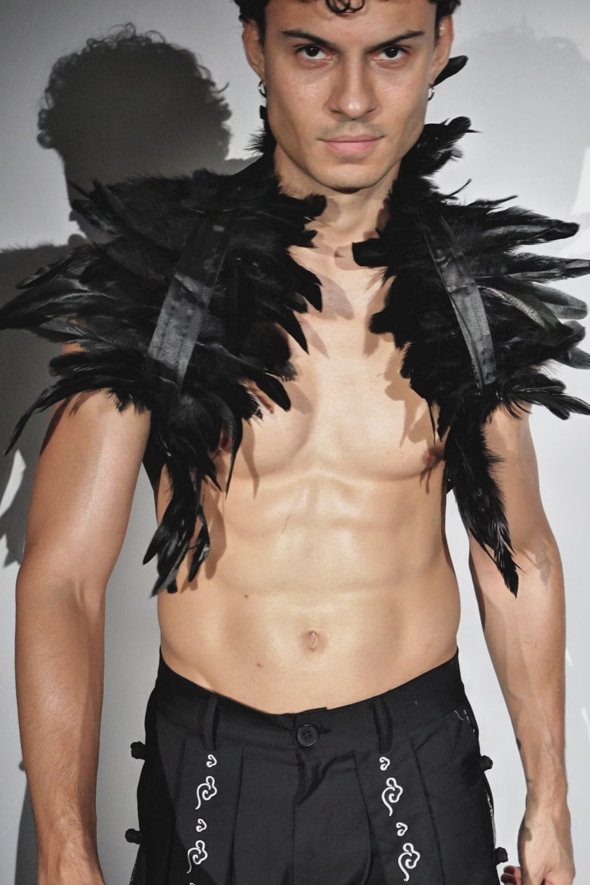 Elevate your gothic style with the Void Anchor Gothic Feather Shrug. This striking accessory blends dark elegance with feathered texture, adding a bold statement to any outfit. Perfect for layering, it offers a unique edge that enhances your look while keeping you comfortably styled. Embrace mystery and sophistication effortlessly with this standout shrug.